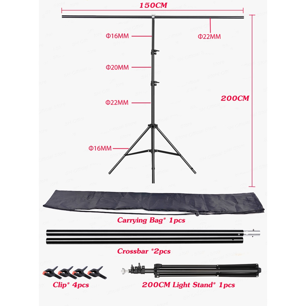 Giá đỡ phông nền hình chữ T 1,5 x 2 m / 5ft x 6,5ft Giá đỡ nền ảnh di động với 4 kẹp lò xo
