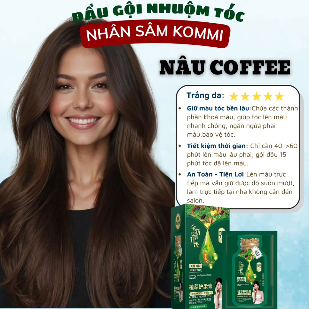 Dầu Gội Gói Phủ Bạc Thảo Dược KOMMI Hộp 10 Gói, Dầu Gội Nhuộm Đen Tóc Tại Nhà, Bền Màu, Không Lem Dính Da Đầu, Mượt Tóc