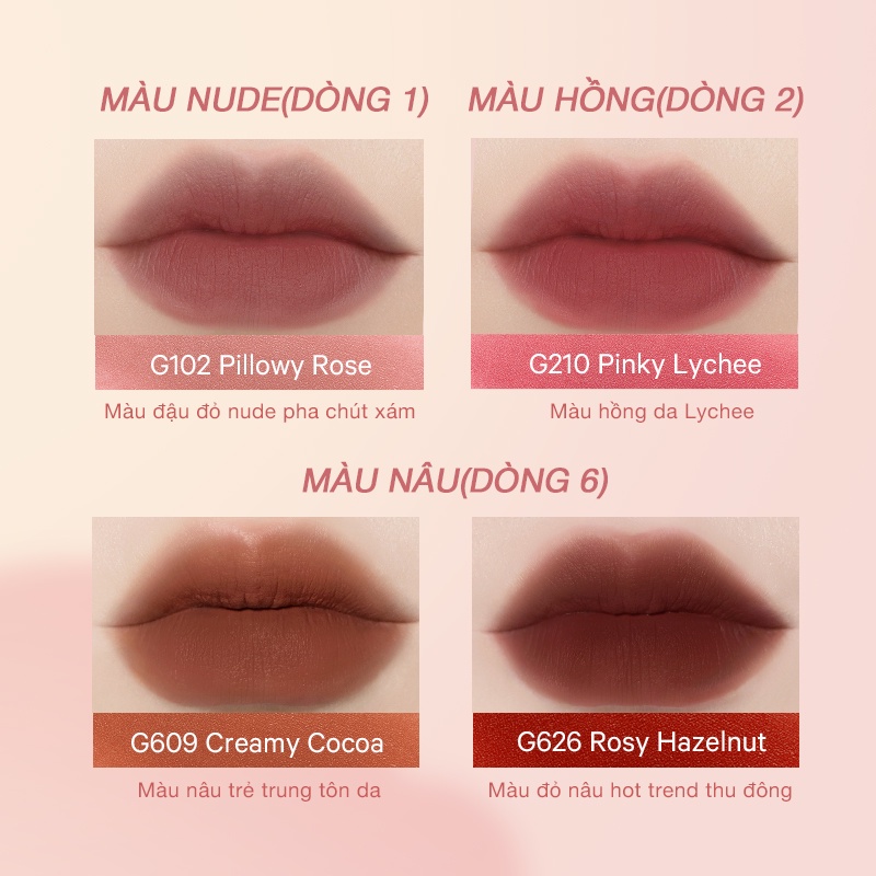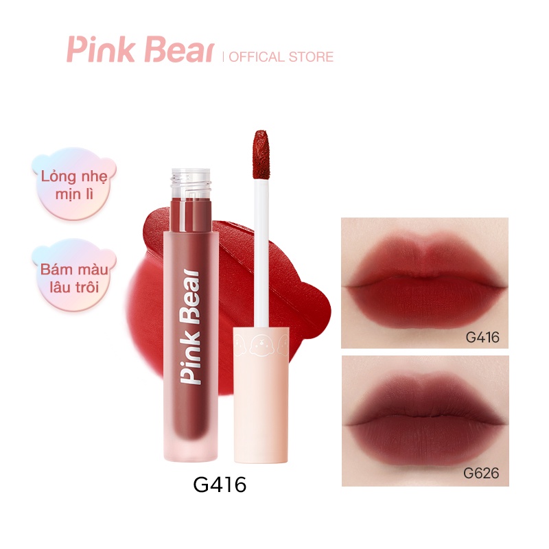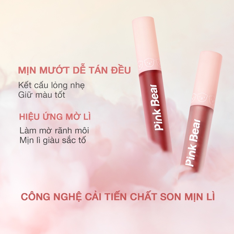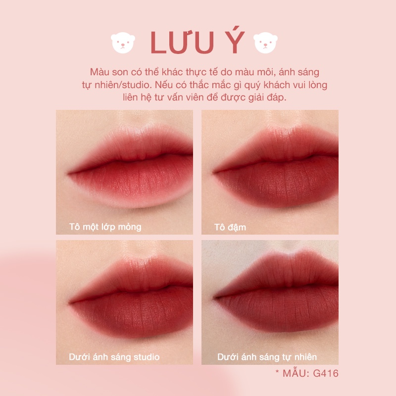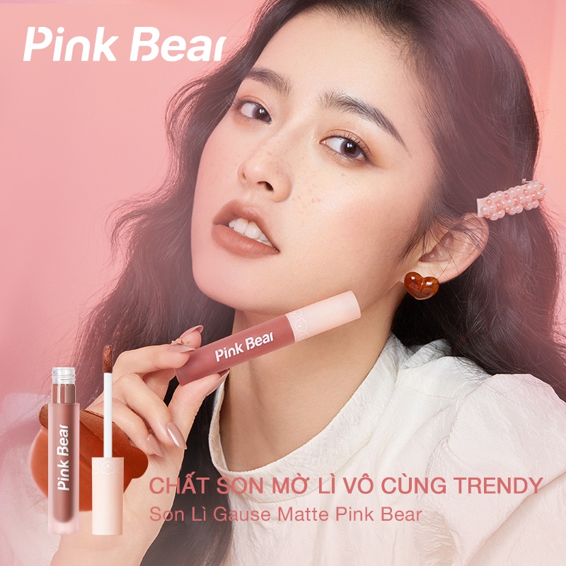 Son Kem Gause Matte Pink Bear Mịn Lì Lâu Trôi Mỏng Nhẹ 2.8g