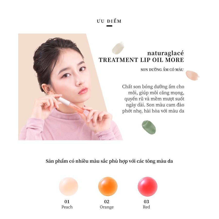 Son môi dưỡng ẩm hữu cơ naturaglacé Treatment Lip Oil mềm mịn môi, có 3 màu tùy chọn, 7.3ml