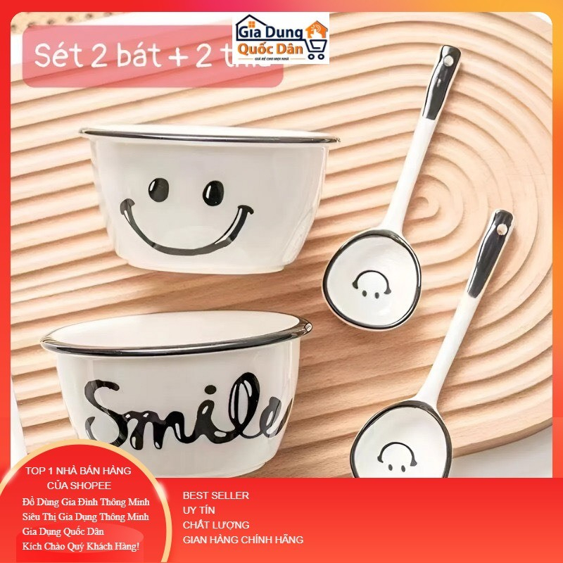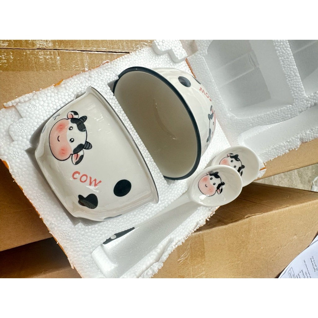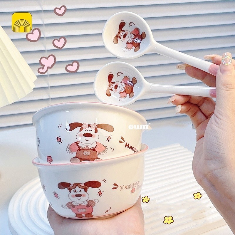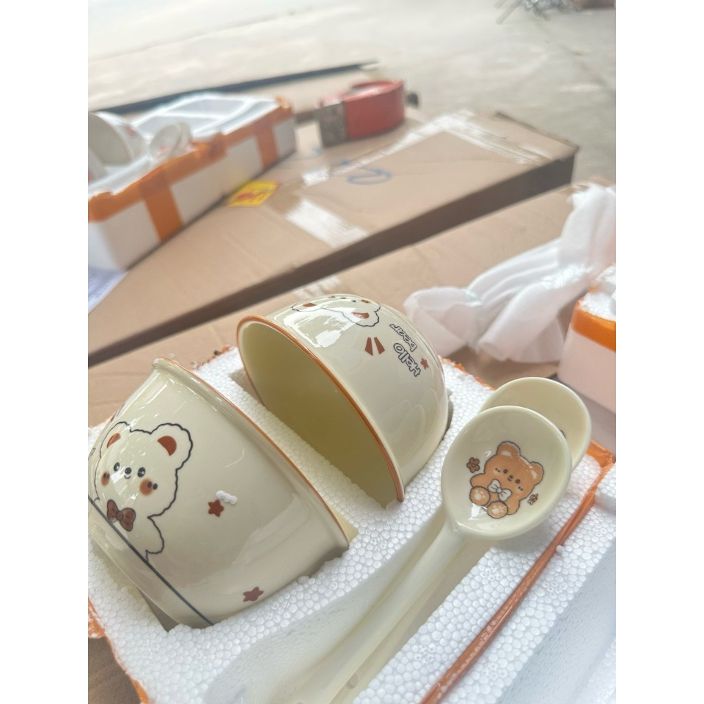 Set 2 Bát Ăn Cơm Bằng Sứ Hình con gấu - Chén Ăn Cơm Ngon Miệng Cho Bé Hoạt Hình Dễ Thương Kèm 2 Thìa