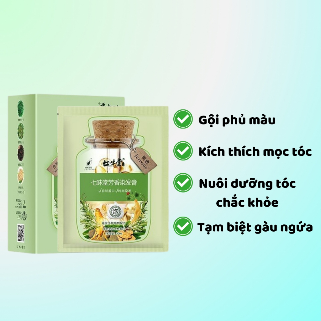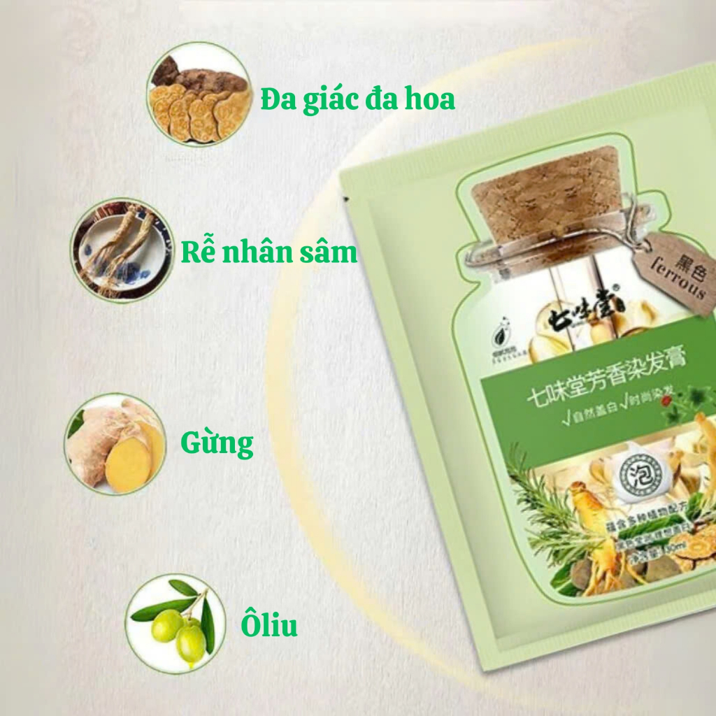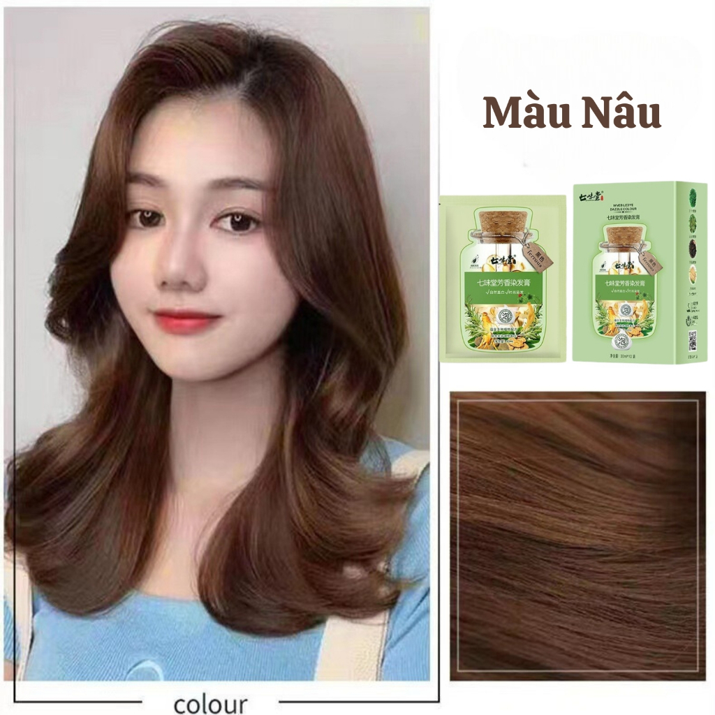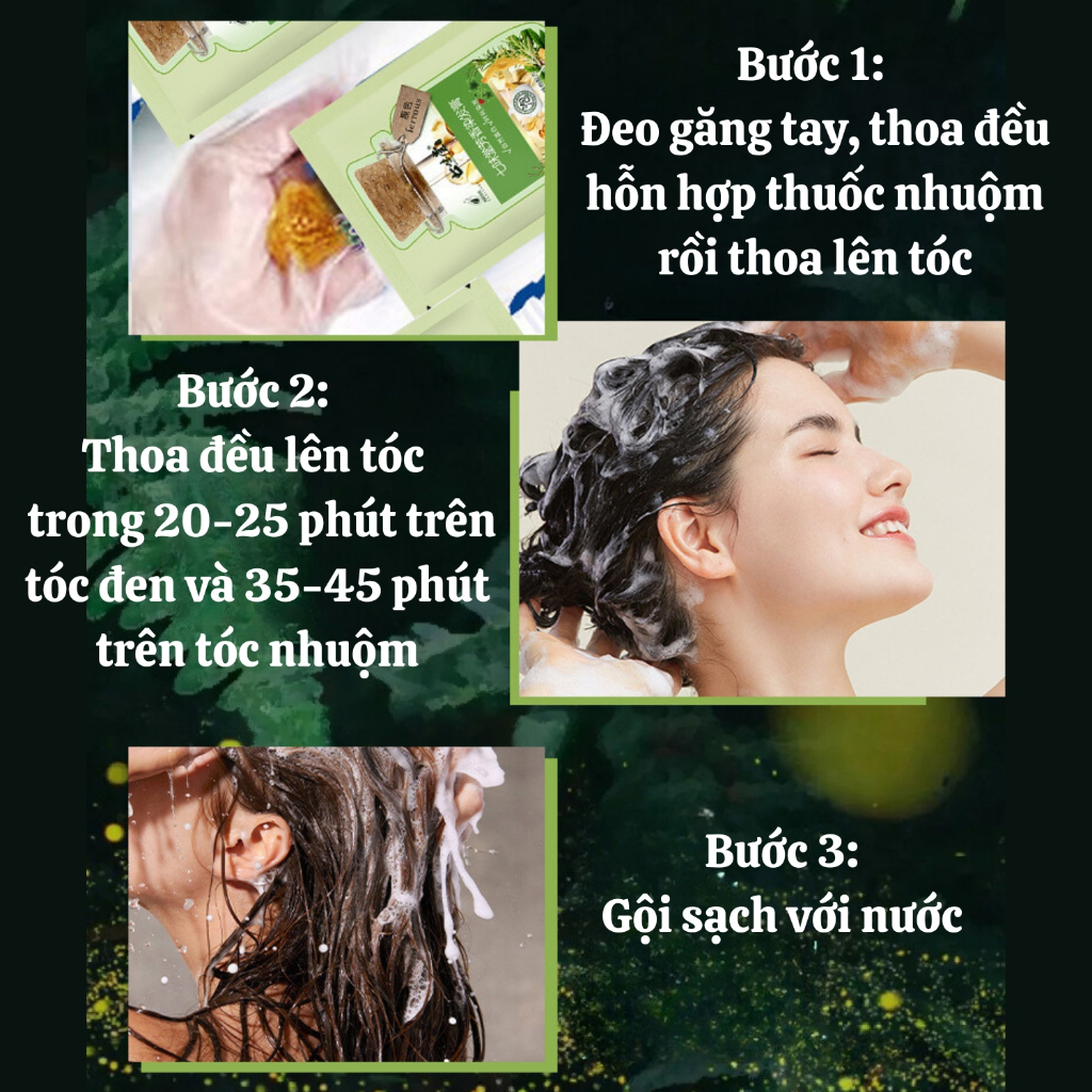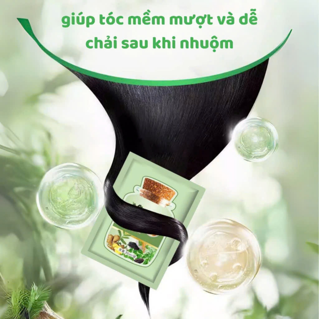 Dầu Gội Phủ Bạc Thảo Dược Hộp 10 Gói, Dầu Gội Nhuộm Tóc Đen, Nâu Nuôi Dưỡng Kích Thích Mọc Tóc