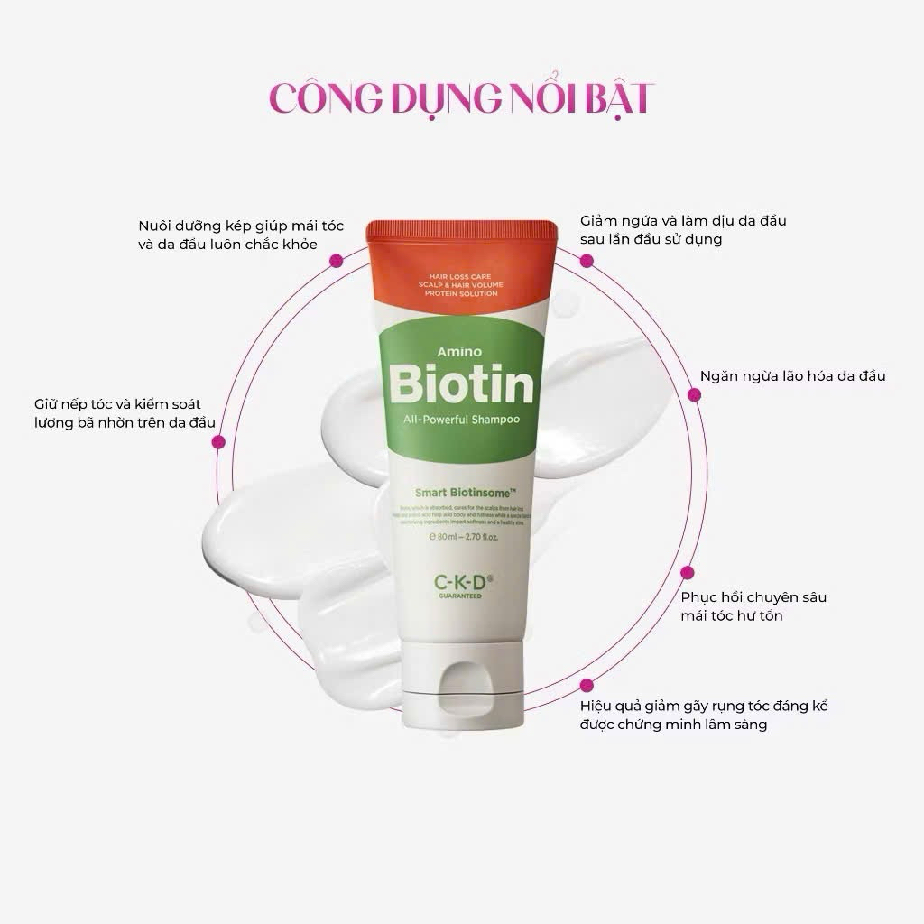 [Date 12/26] Dầu gội CKD siêu phục hồi tóc hư tổn Amino Biotin Shampoo 80ml, giảm gãy rụng, da đầu khỏe mạnh