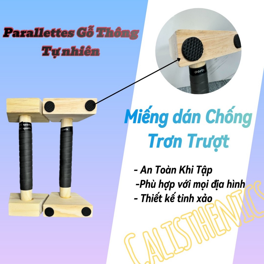Parallettes - dụng cụ hỗ trợ chống đẩy, hít đất, chồng chuối, planche, calisthenics, street workout (màu gỗ tự nhiên)