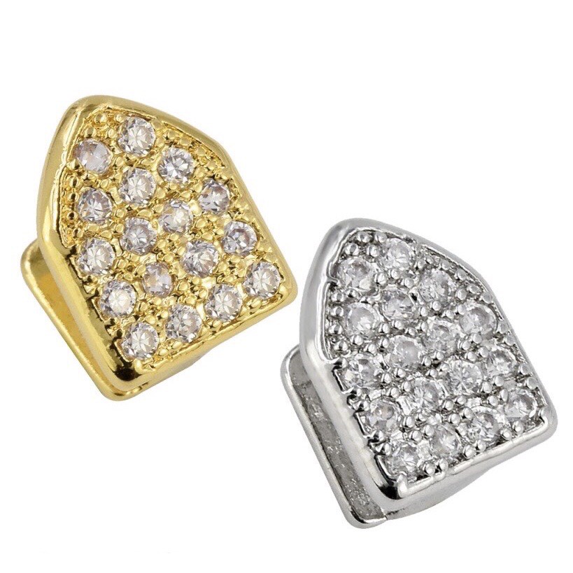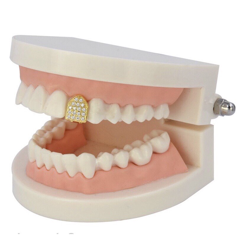 Grillz trang sức răng đơn đính đá full răng vàng bạc hiphop