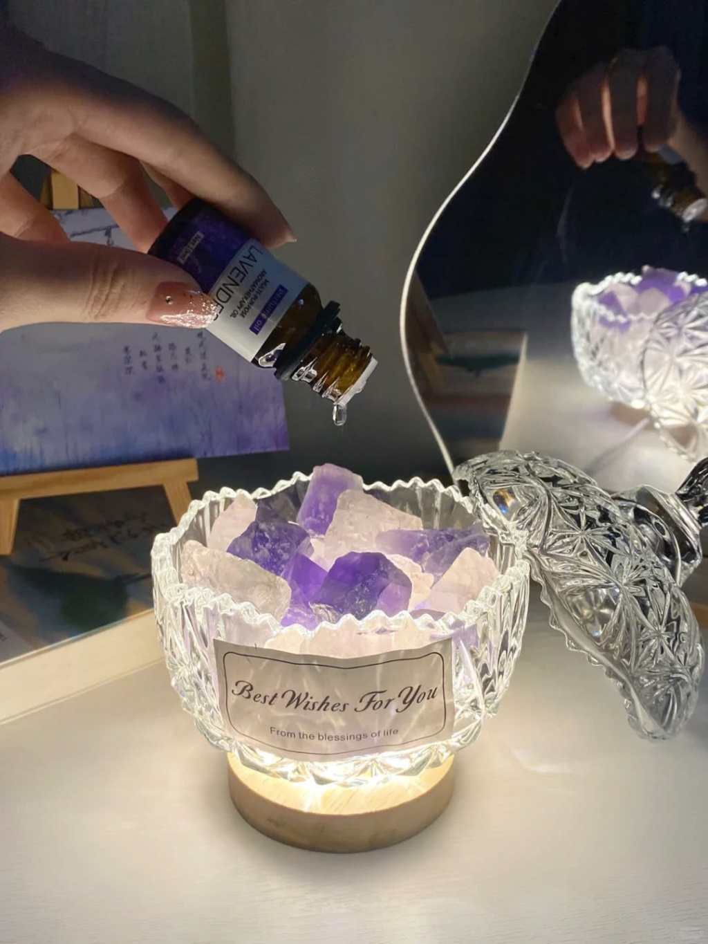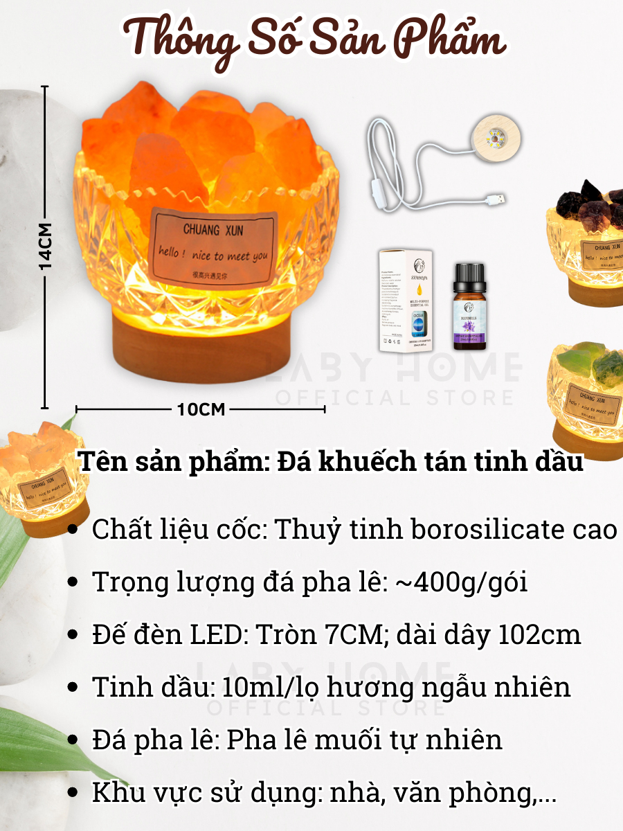 Cốc Đá Khuếch Tán Tinh Dầu Tự Nhiên Kiêm Đèn Ngủ - Thư Giãn, Thanh Lọc Không Khí, Đèn Trang Trí