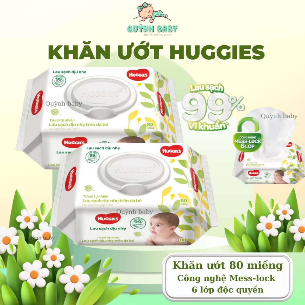Khăn ướt Huggies 80 miếng ngừa hăm, mịn cho bé [chính hãng]