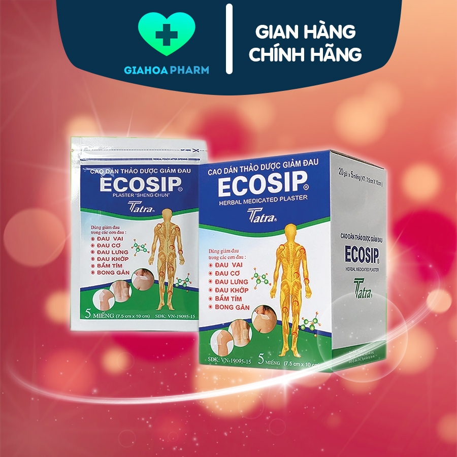 Cao dán nóng thảo dược Ecosip Plaster Sheng Chun Tatra giúp giảm đau vai, đau cơ, lưng, khớp, giảm bầm tím, bong gân