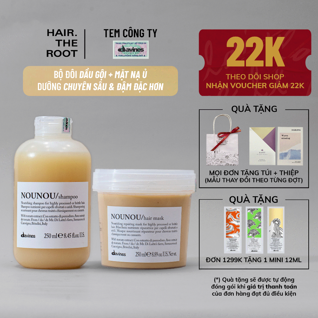 Bộ Gội Xả, Mặt Nạ Tóc Davines Nounou Phục Hồi Hư Tổn, Bóng Mượt Tóc 250ml / 1000ml - Hàng Công Ty