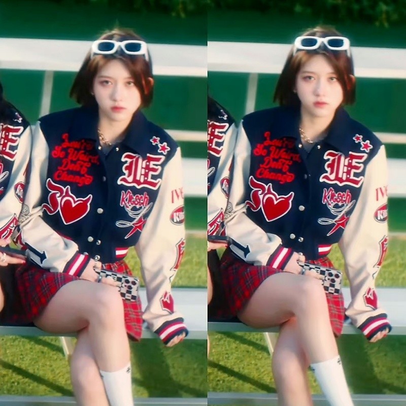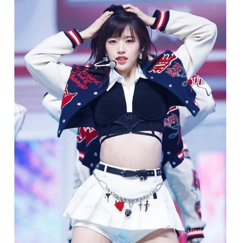 Trang phục hát kitsch nhóm nhạc nữ IVE trang phục bóng chày thêu kiểu Mỹ Áo khoác ngắn trang phục múa JZZ nữ