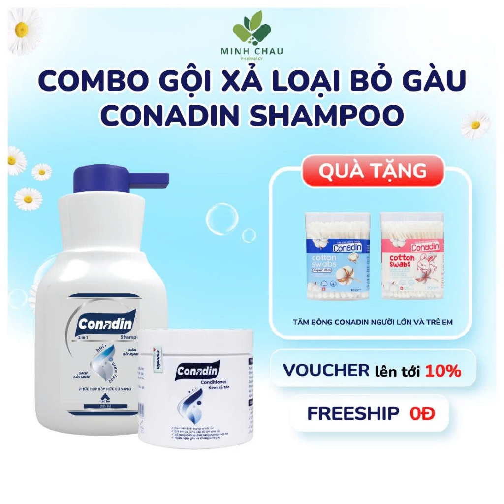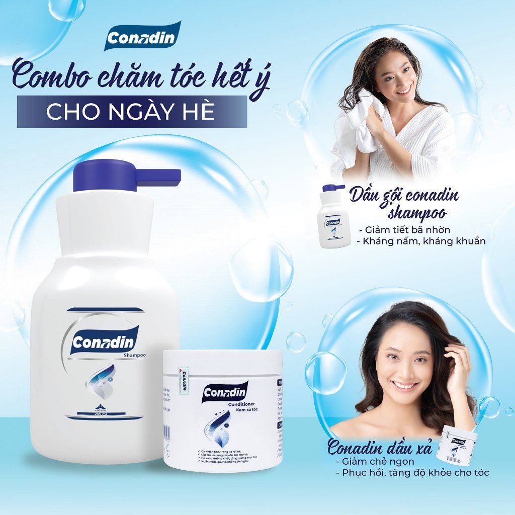 Dầu gội xả loại bỏ gàu Conadin ngăn ngừa nấm da dầu, mềm mượt tóc kiểm soát dầu thừa chai 285ml