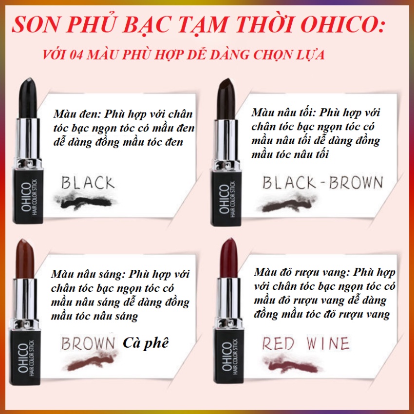 Son Nhuộm Tóc Che Phủ Tóc Bạc Tạm Thời OHICO 04Gr/Thỏi 04 Mầu Chọn Lựa