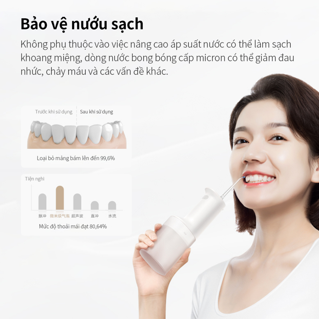 Tăm Nước Mijia 2 Công nghệ xung bọt khí siêu vi Bảo vệ nướu tối ưu 3 chế độ xịt thông minh 200mL