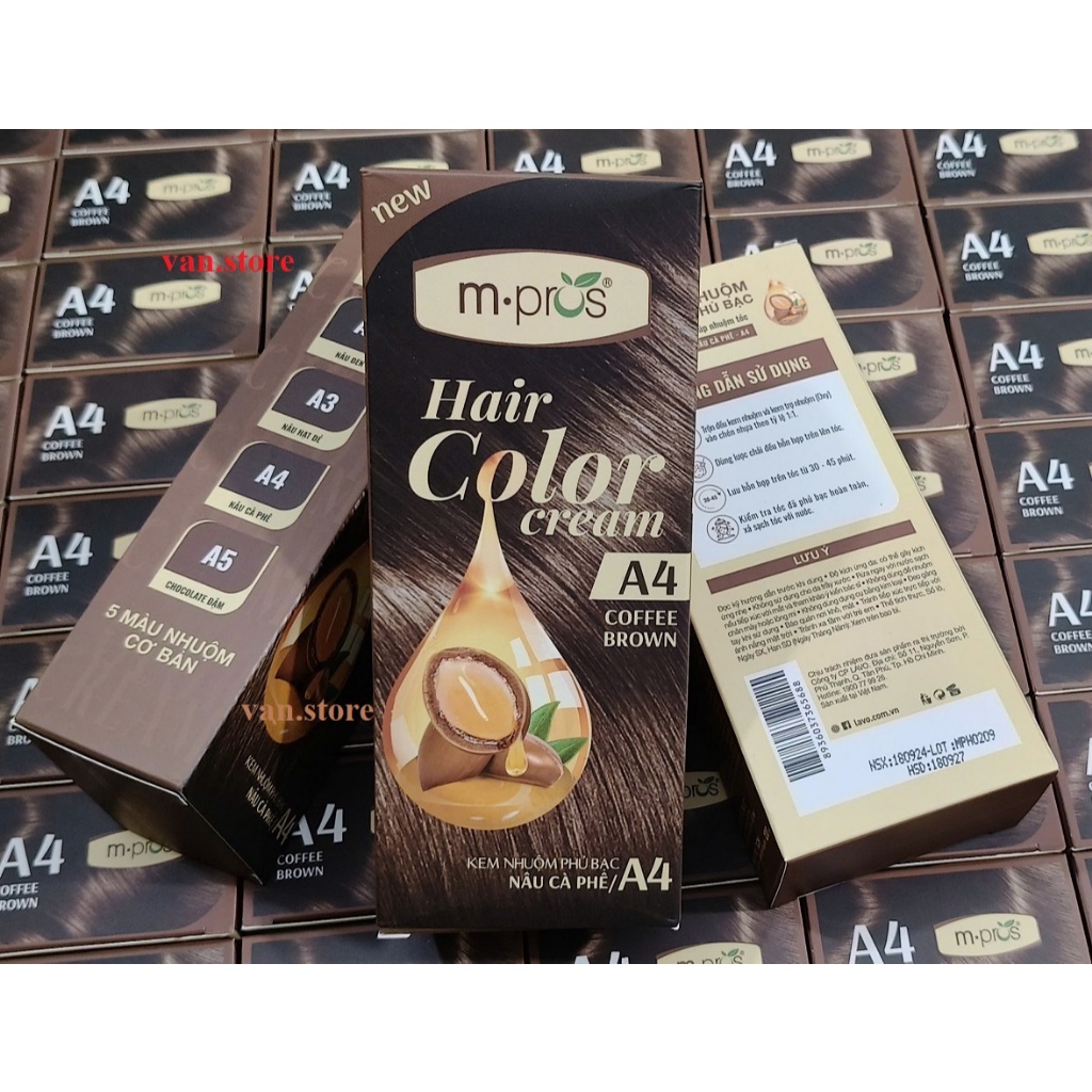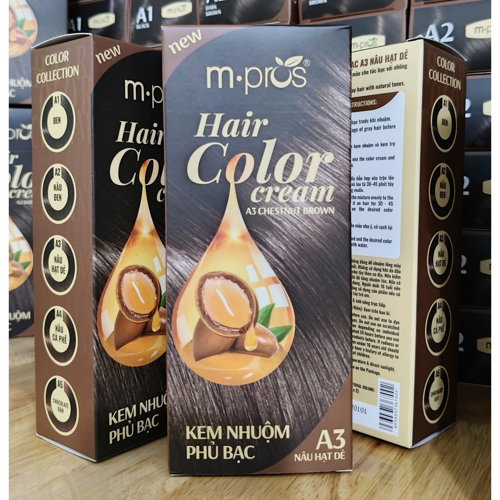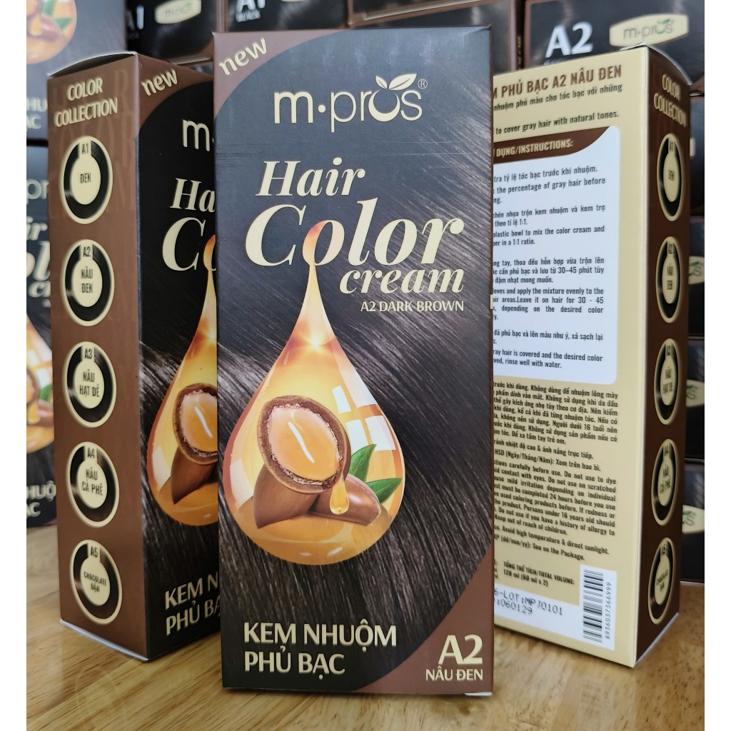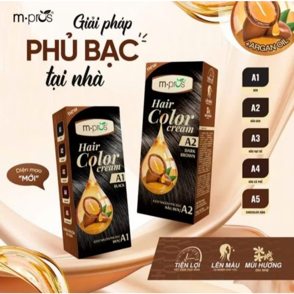 [Đủ Màu] Kem Nhuộm Tóc Phủ Bạc M.Pros 60mlx2 💖Kèm Oxy💖 Đen- Nâu Đen- Nâu