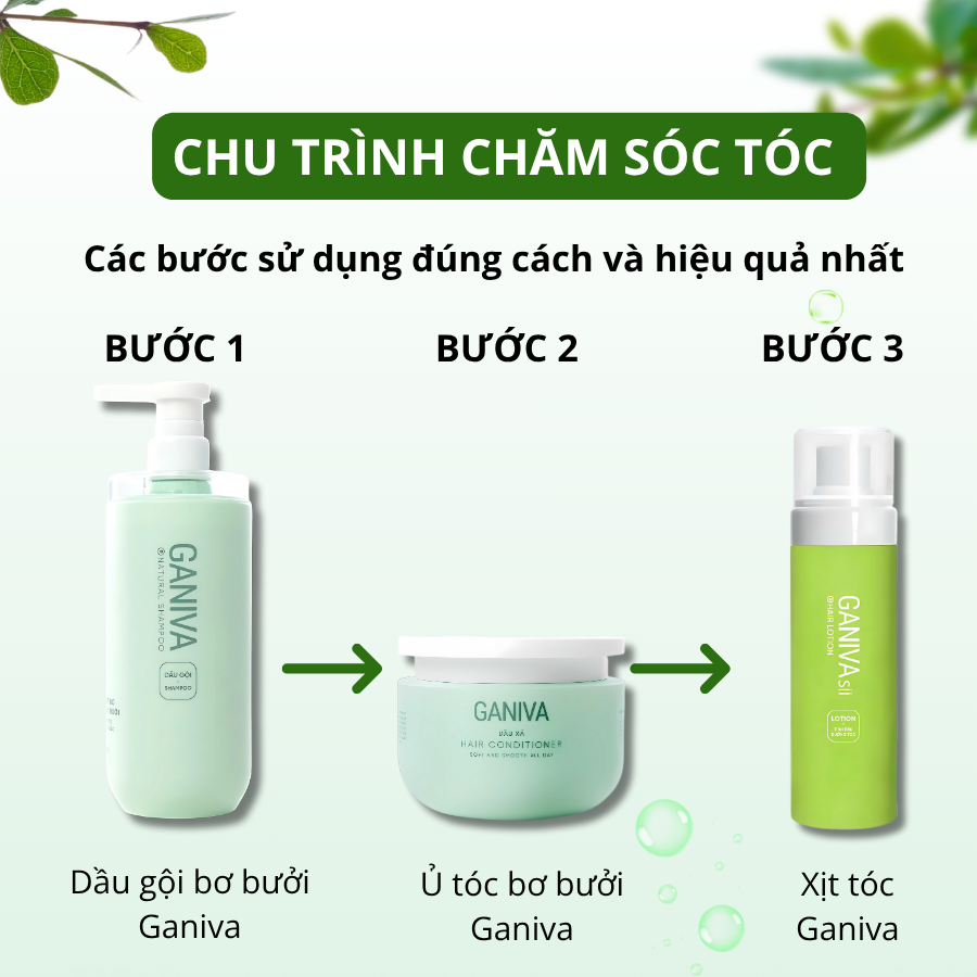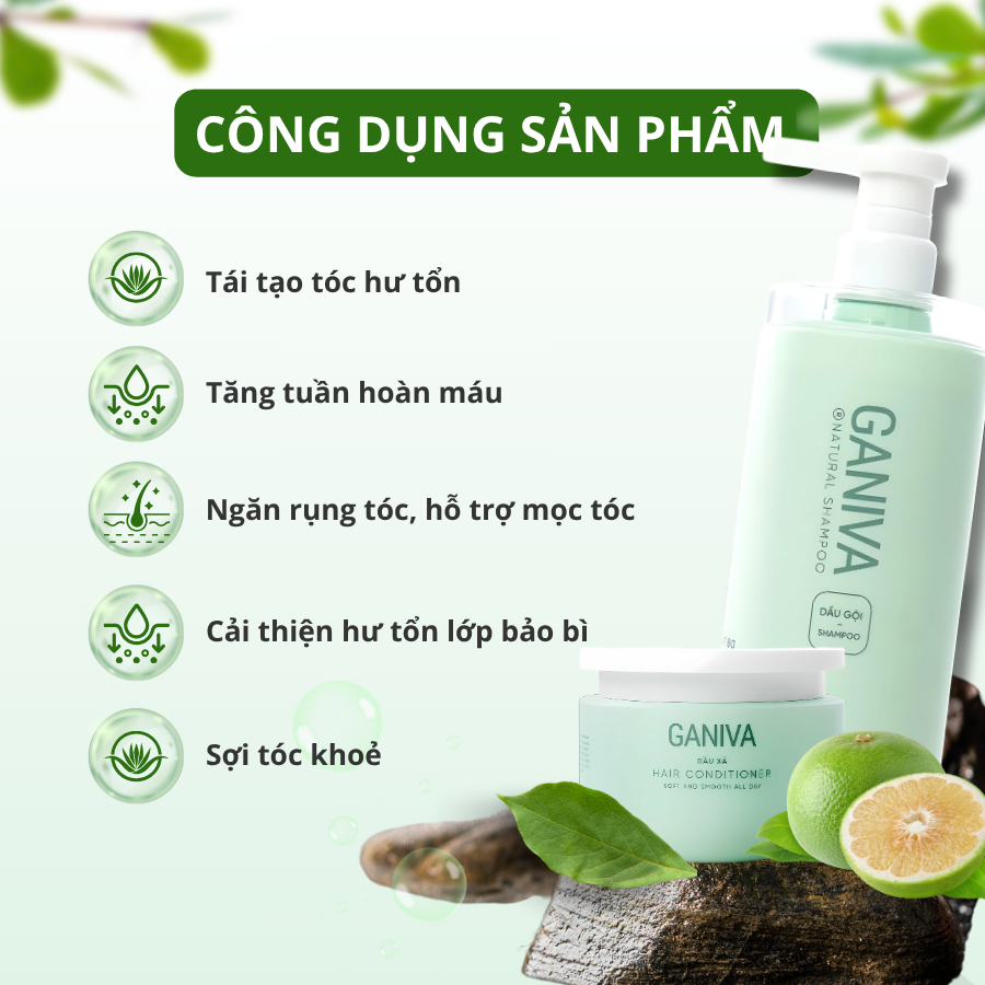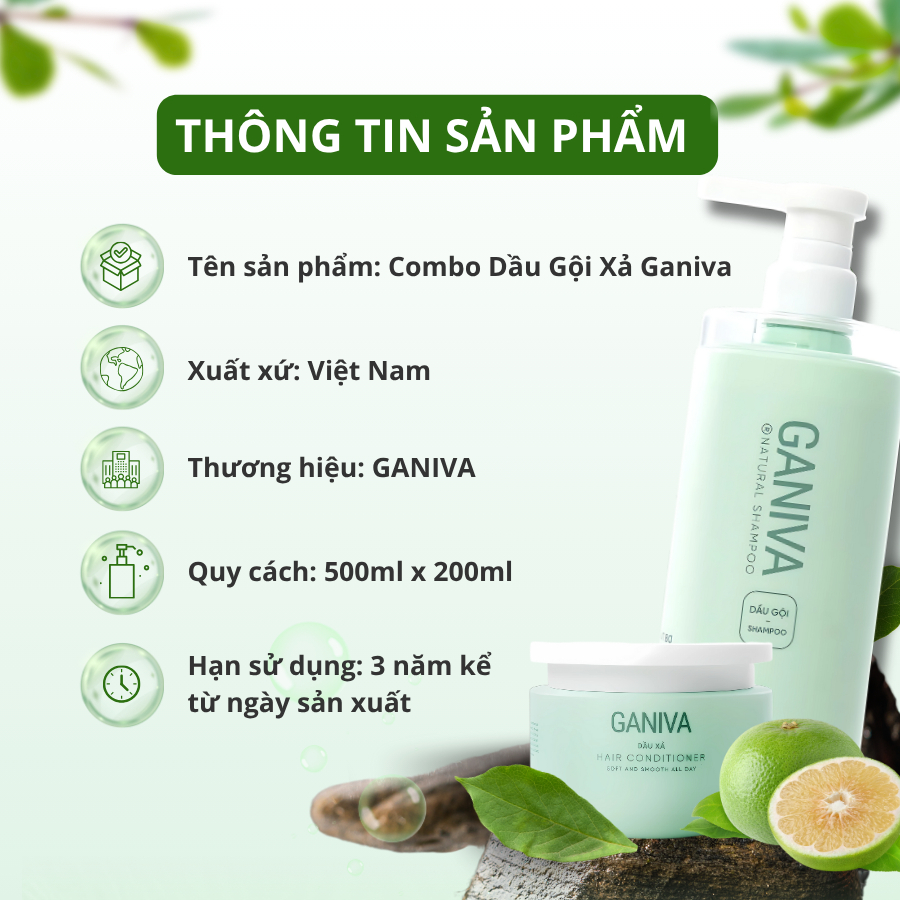 Combo Dầu Gội Dầu Xả Ganiva Xanh Dầu Bơ Bưởi Giúp Tóc Mềm Mịn Chắc Khỏe Giảm Gãy Rụng, Nấm Ngứa