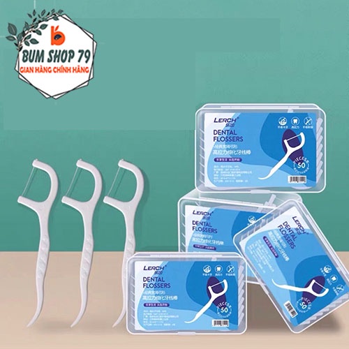 Hộp 50 cây tăm chỉ nha khoa tiệt trùng sợi chỉ mảnh dai chắc chắn, Tăm xỉa răng nha khoa 2 đầu vệ sinh kẻ răng miệng