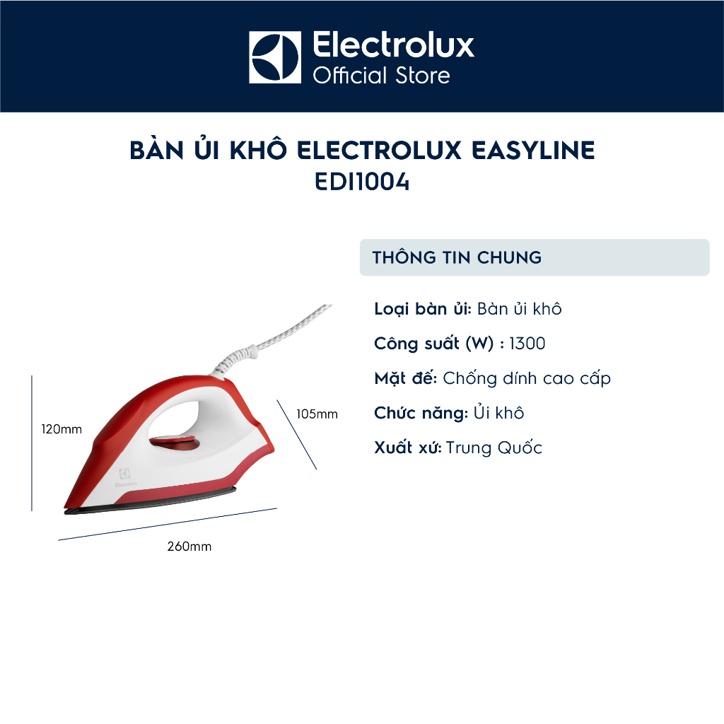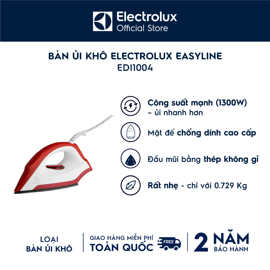 Chỉ giao miền Bắc - Bàn ủi khô Electrolux EasyLine - EDI1004 - Mặt đế chống dính, là ủi dễ dàng và mượt mà