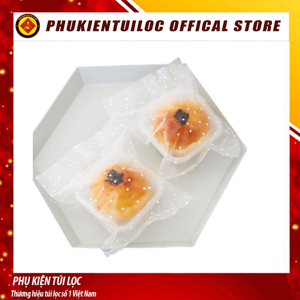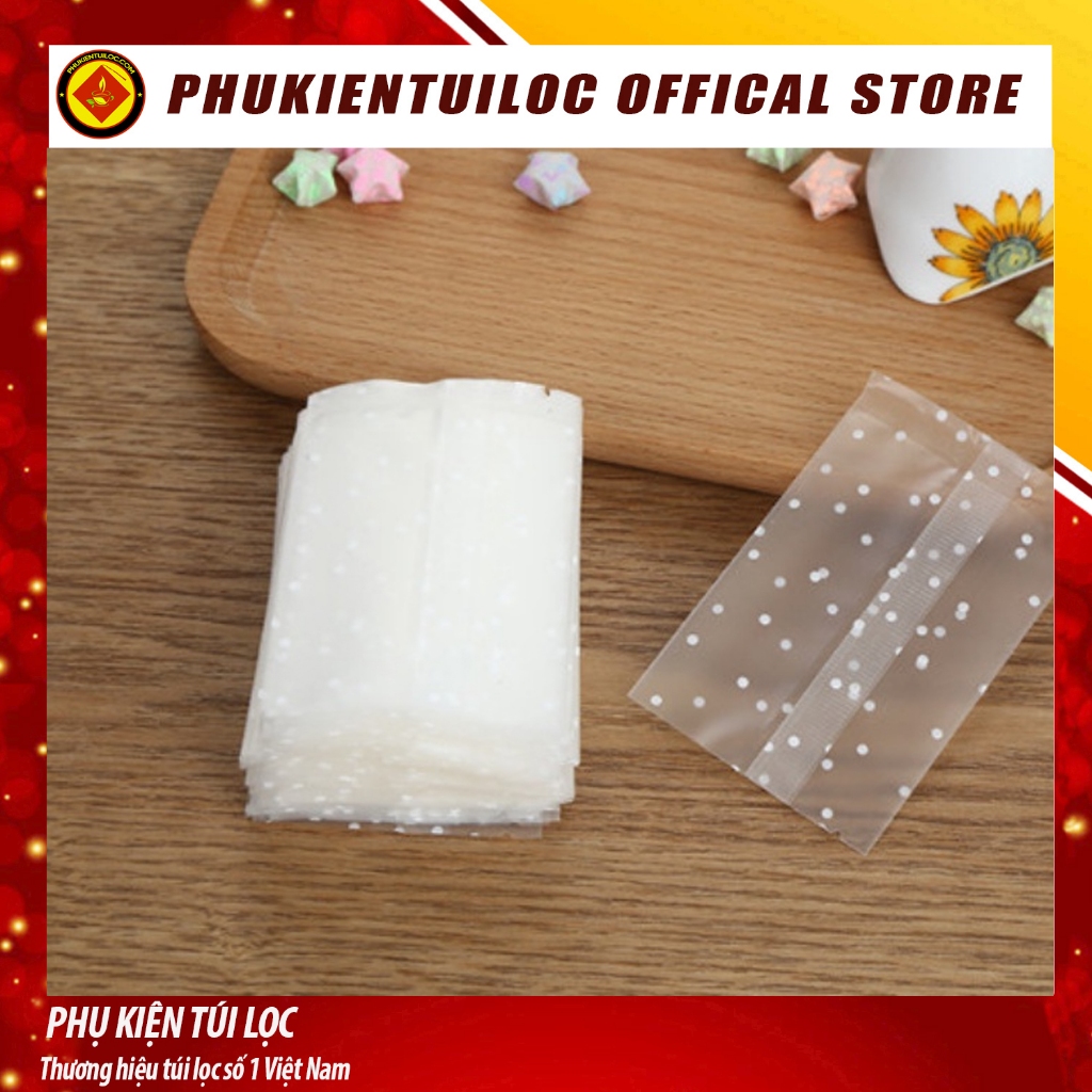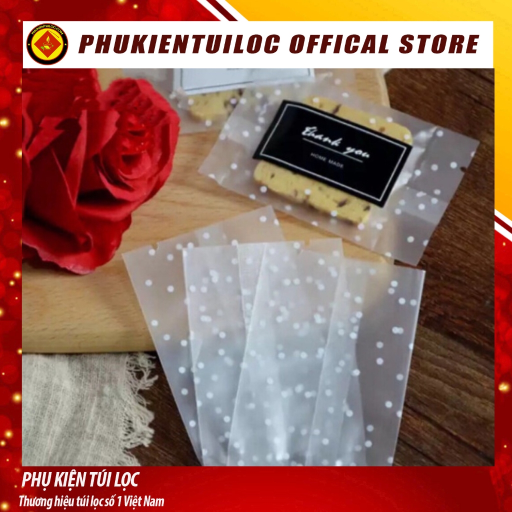 Set 100 Túi đựng bánh quy/ trà hoa (túi trắng mờ chấm bi) nhiều kích thước- Phukientuiloc
