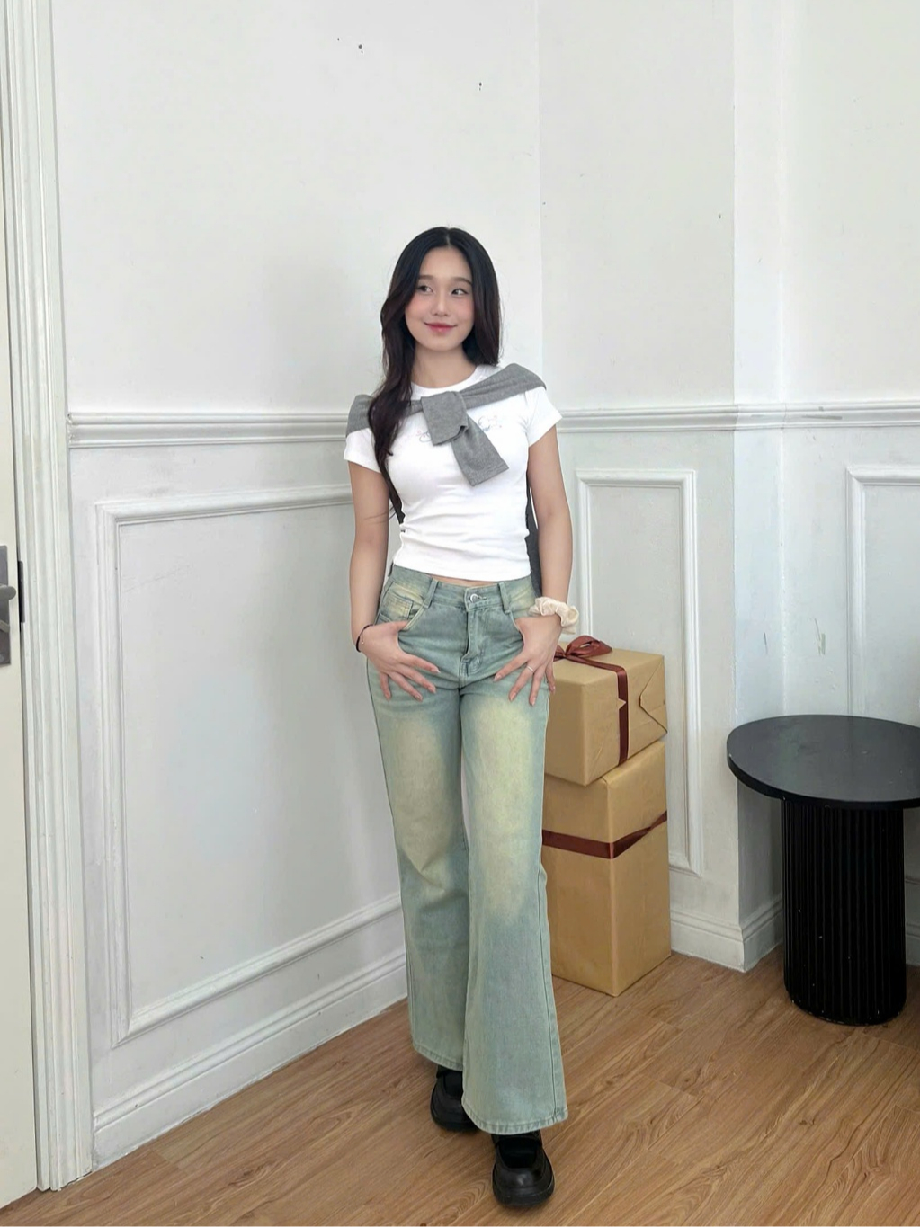 Quần Jean Wash Ống Loe 𝑩𝒚𝒄𝒂𝒎𝒄𝒂𝒎 Dáng Dài Ống Loe Nữ Tính Thời Trang QJ03 QTD065