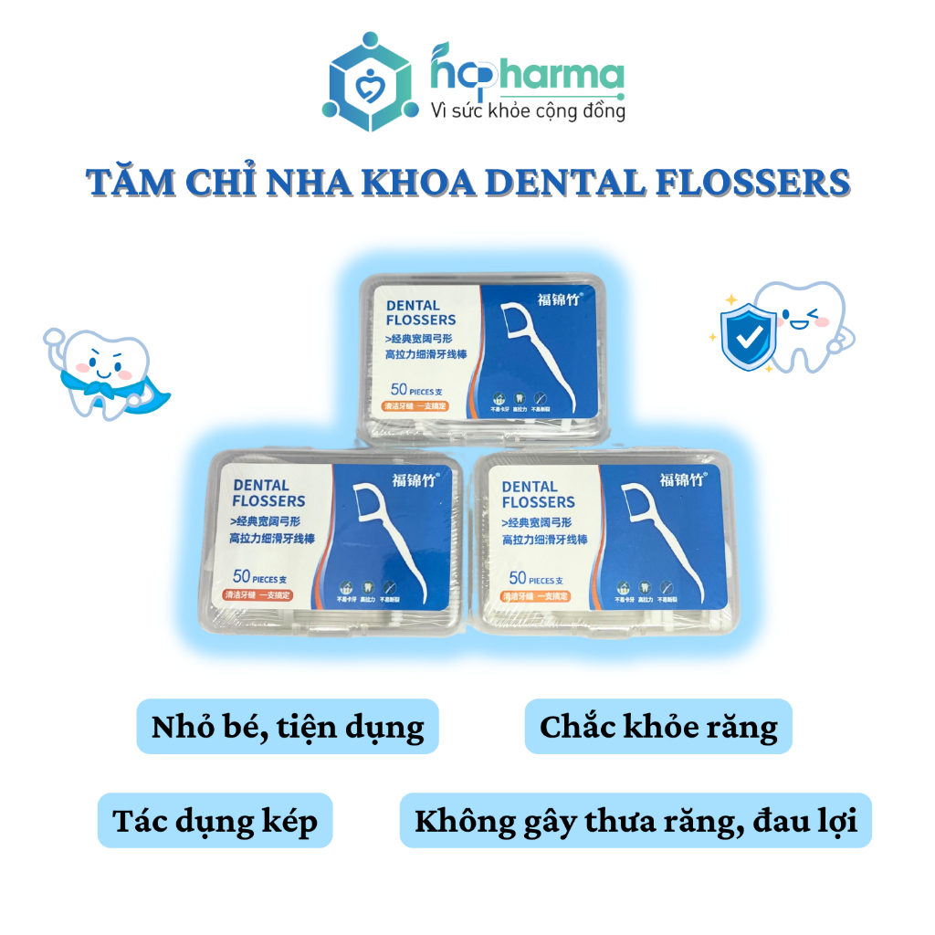 Tăm chỉ nha khoa hộp 50 Cây Dental Flossers tăm chỉ vệ sinh răng miệng
