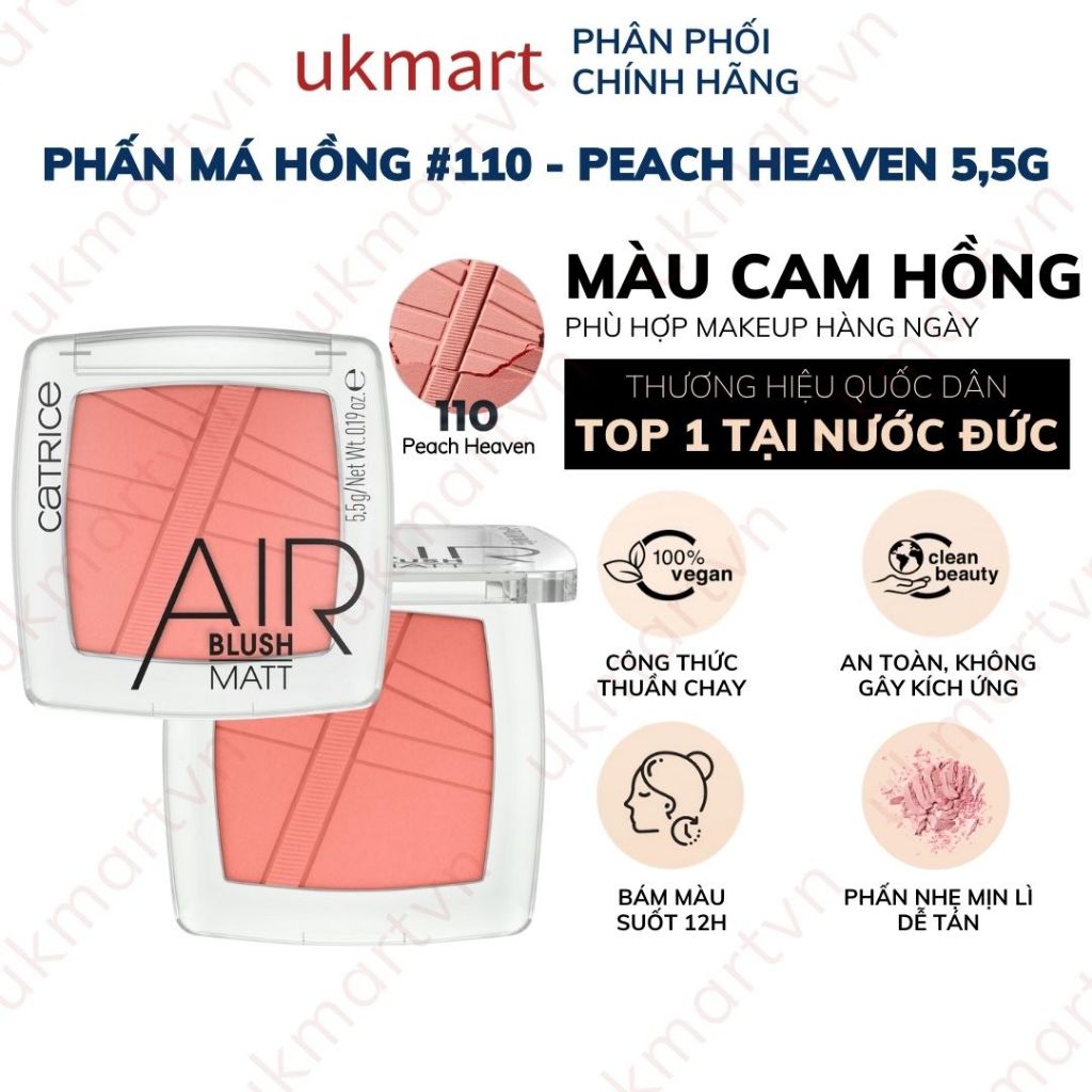 Phấn má hồng Catrice Air Blush hạt phấn nhẹ mịn lì cho lớp trang điểm tự nhiên 5,5g