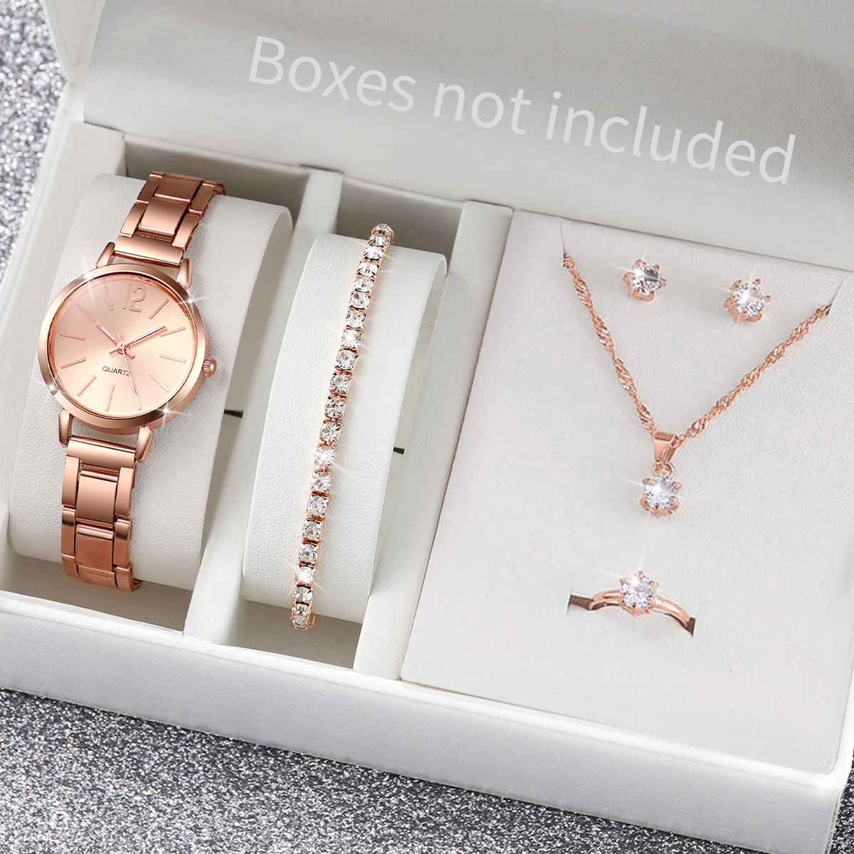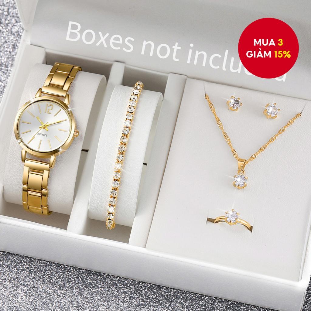 Bộ Đồng Hồ Nữ Ros ivga 6 Dây Hợp Kim Thạch Anh Kim Cương Giả Trang Sức Thời Trang Quà Tặng Giáng Sinh (Không Hộp)