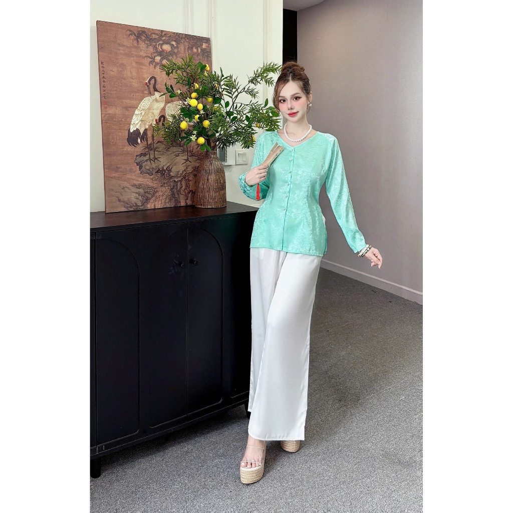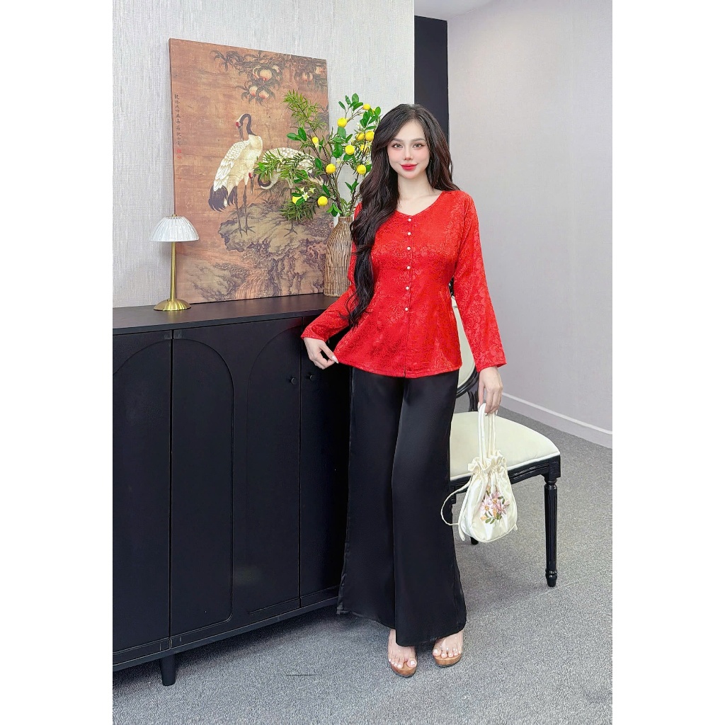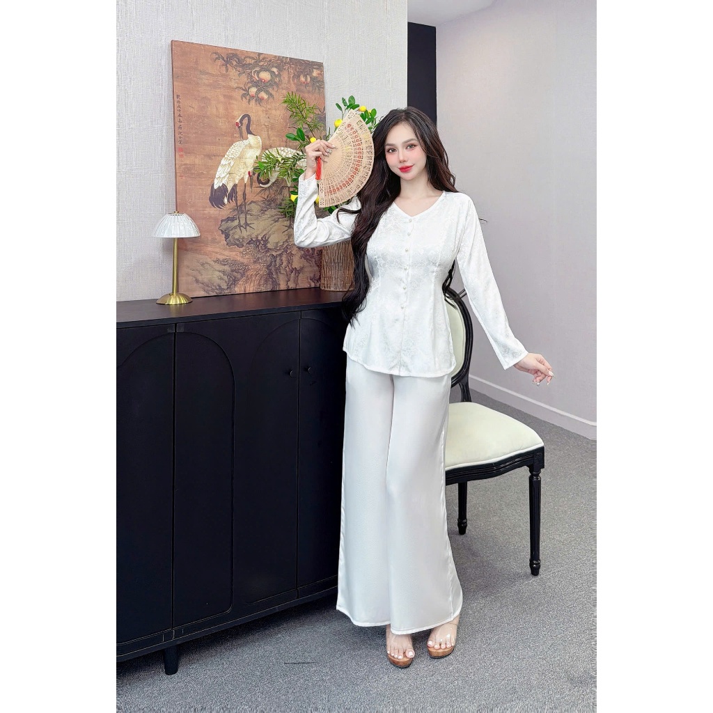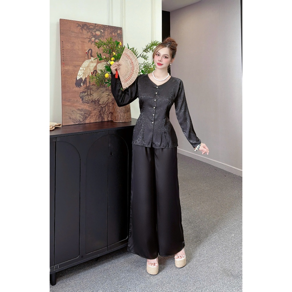 Set bộ bà ba ANH MỸ cổ tim tay dài bà ba chất liệu gấm quần latin SP0336