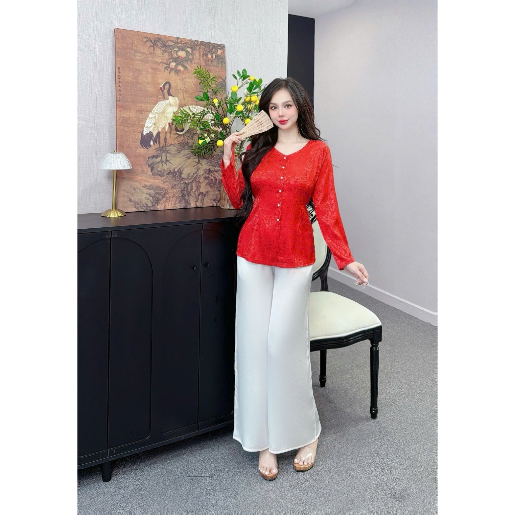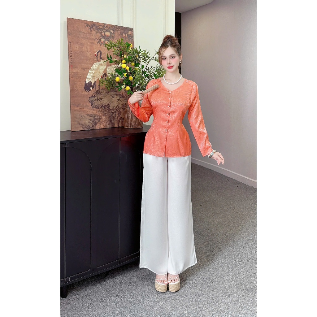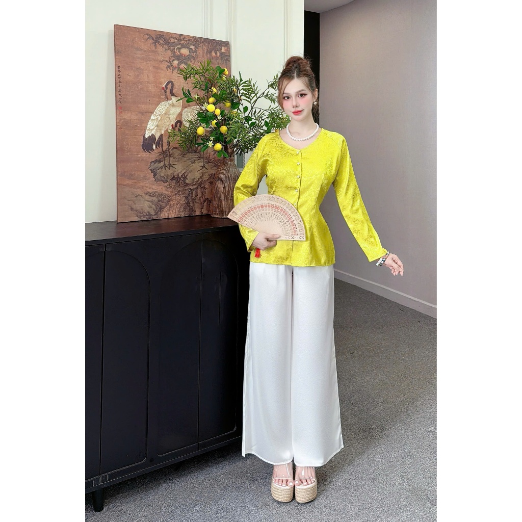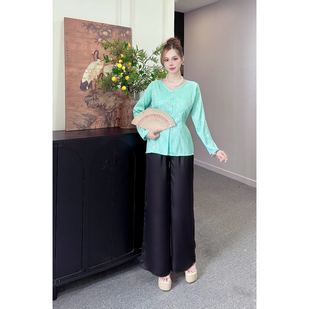 Set bộ bà ba ANH MỸ cổ tim tay dài bà ba chất liệu gấm quần latin SP0336
