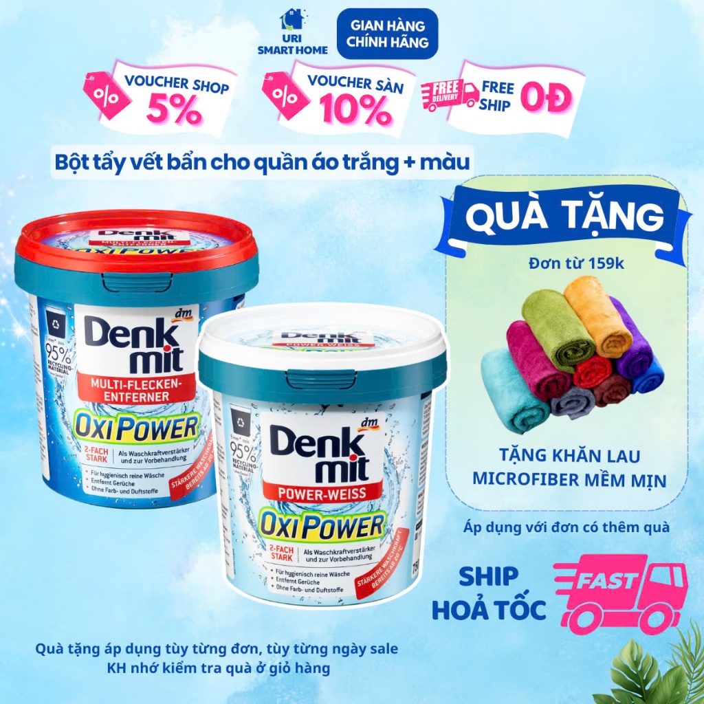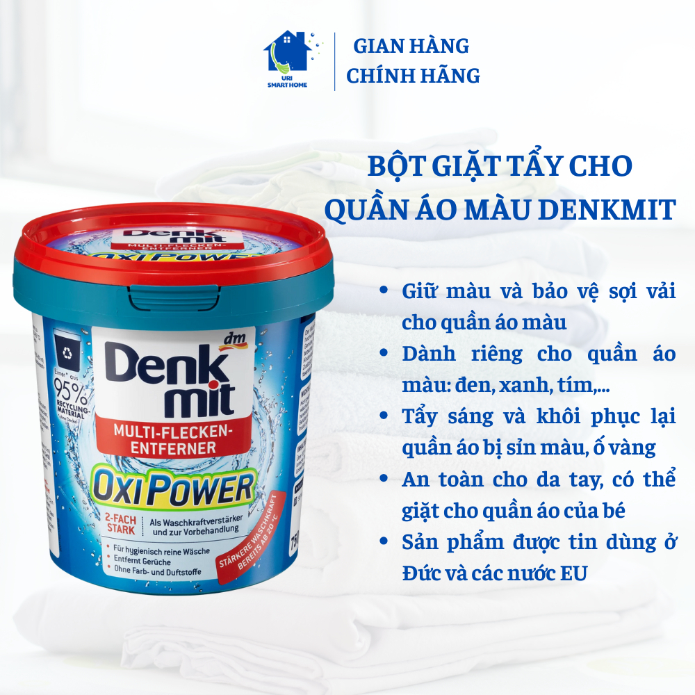 Bột tẩy trắng quần áo và quần áo màu chống phai Denkmit Multi Flecken Entferner Oxi Power 750g