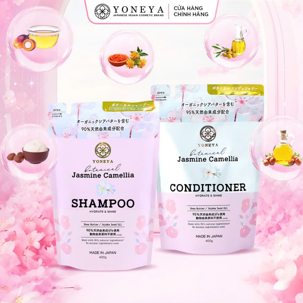 Gội Xả Yoneya Thuần Chay Jasmine Camellia Hydrate & Shine Hữu Cơ và Phục Hồi Hư Tổn 400g