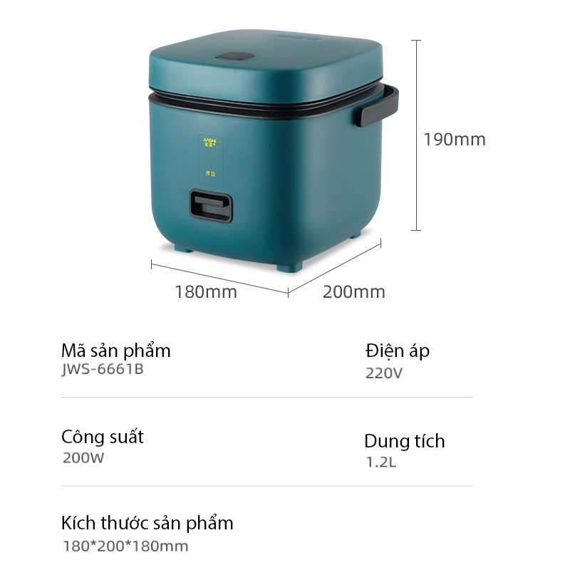 Nồi Cơm Điện Mini Đa Năng JIASHI 1,2L CHÍNH HÃNG (Nấu Cháo, Hầm, Chưng, Hấp, Luộc) Cho 1 Đến 2 Người