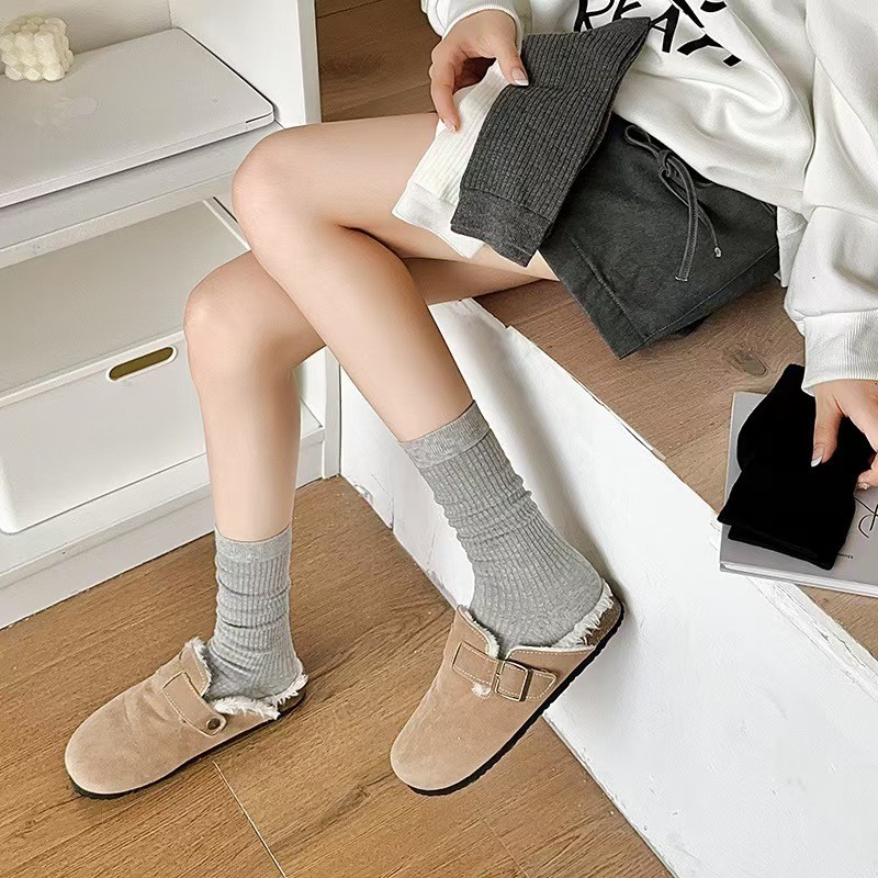 Xương Bê Encore Đỏ Tất Thời Trang Đơn Sản Phẩm Đen Trắng Xám Trung Bình Ống Dài Cọc Nhật Bản Lala Tất