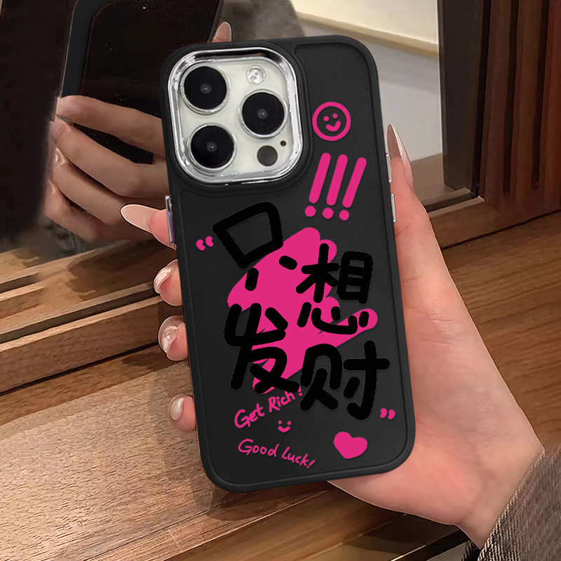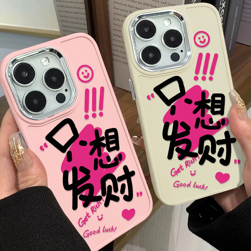 Just Want To Fortune Nhân Vật Ốp Lưng Điện Thoại Tương Thích Cho IPhone 11 12 13 Pro Max 14 15 7 8 Plus SE 2020 XR X / XS Max Kim Loại Lắp Ráp Gương Khung Silicon Chống Rơi