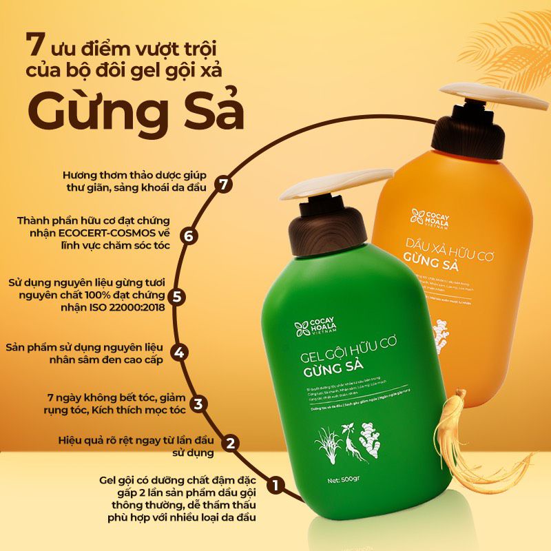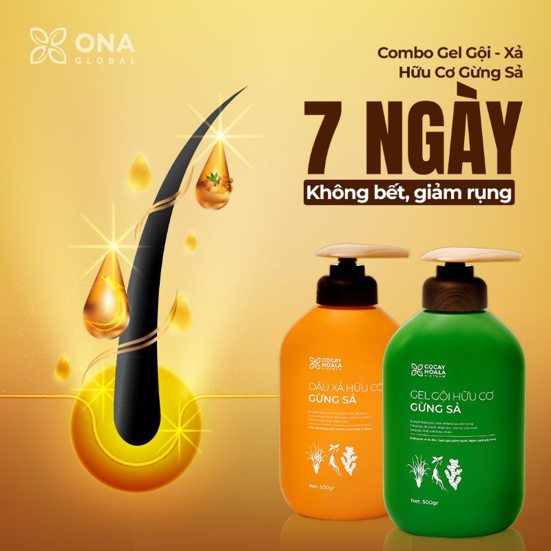 Dầu Gội Xả Hữu Cơ Gừng Sả Ngăn rụng , bết tóc tóc 500g