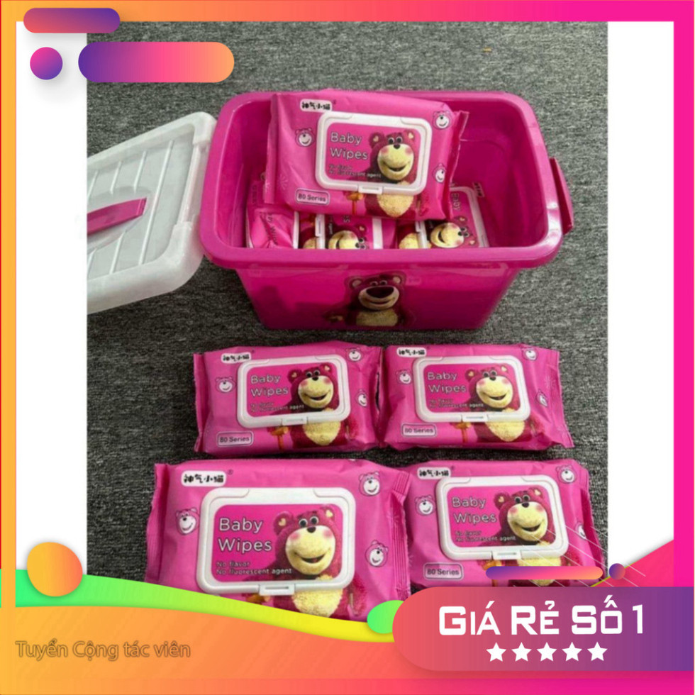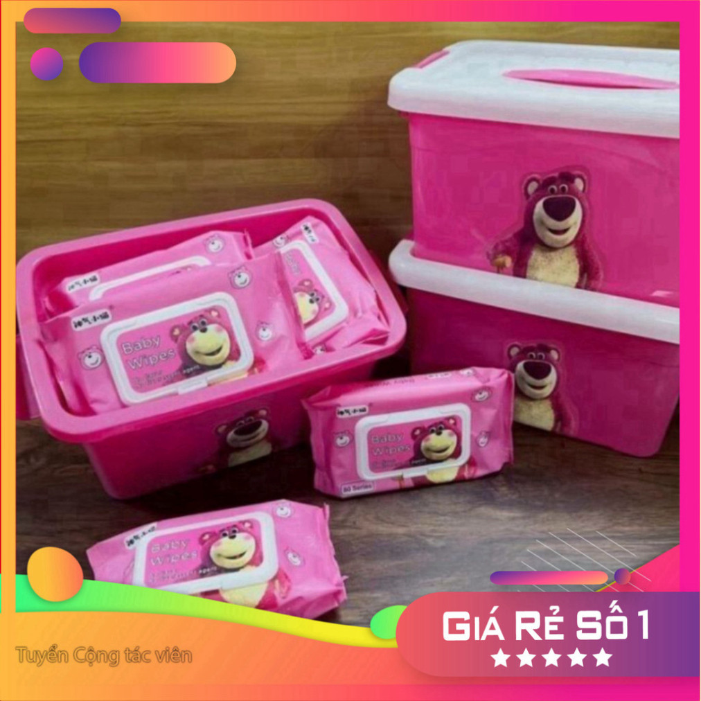 [TẶNG THÙNG] 10 bịch khăn giấy ướt GẤU DÂU chính hãng, an toàn và tin cậy cho bé loại 1