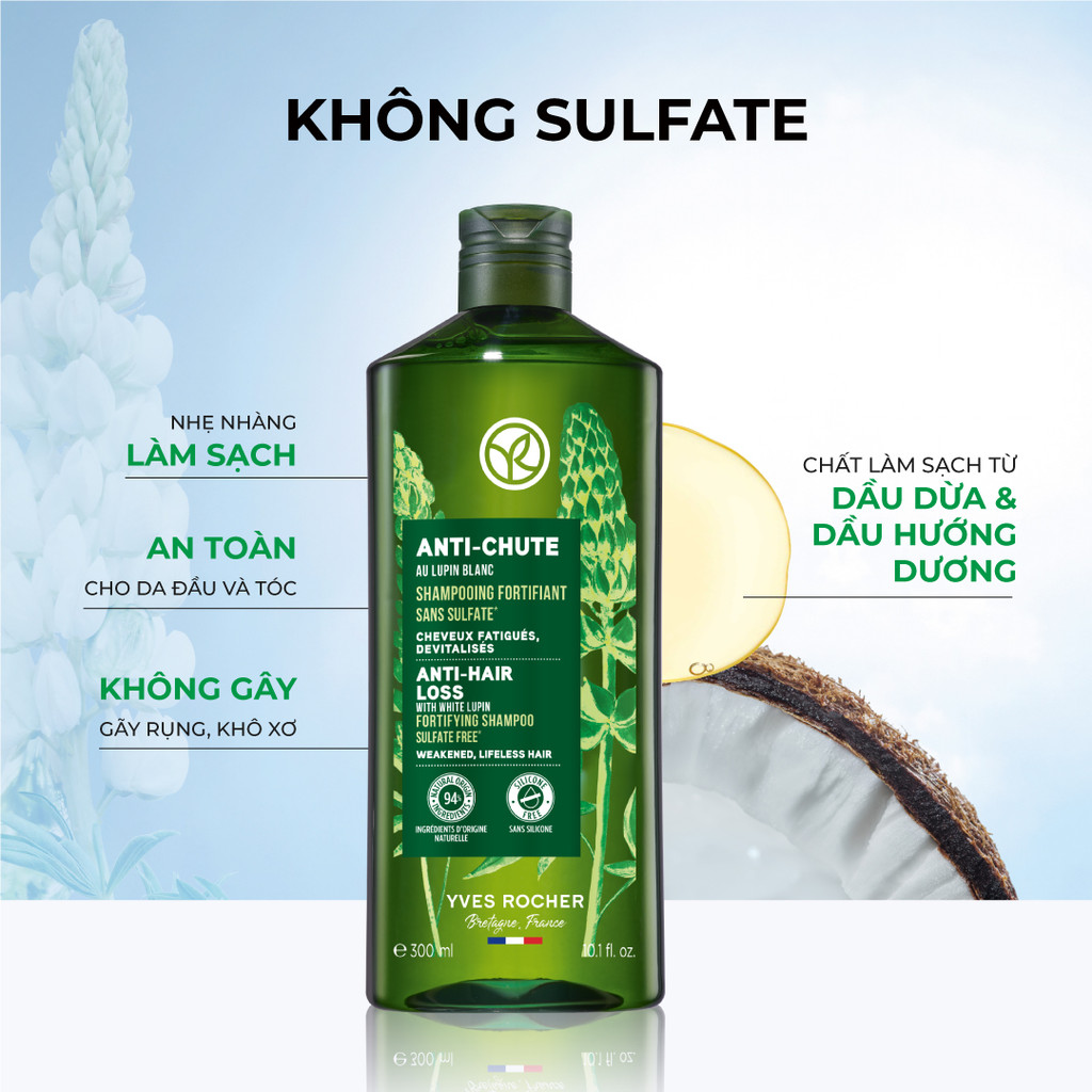 Bộ gội xả giảm tóc gãy rụng Yves Rocher Anti-Hair Loss With White Lupin Fortifying 300mlx200ml