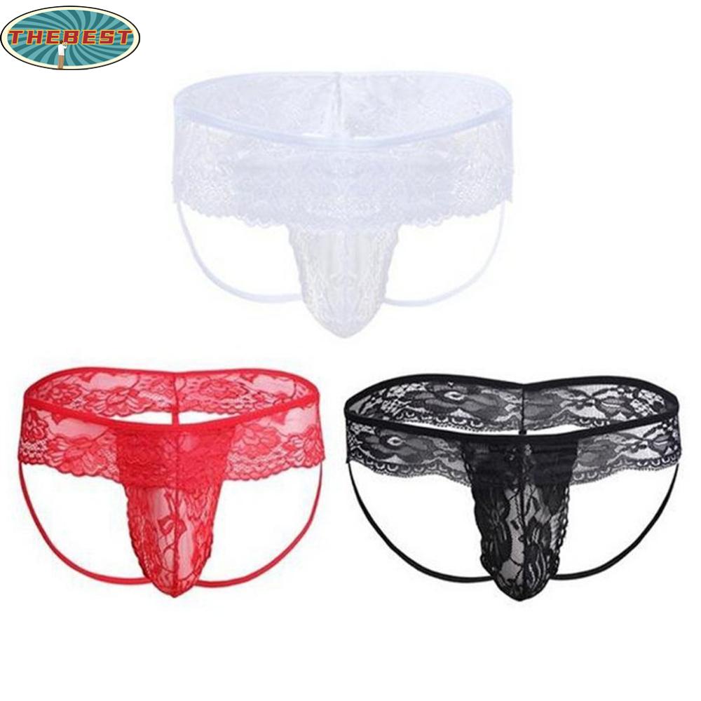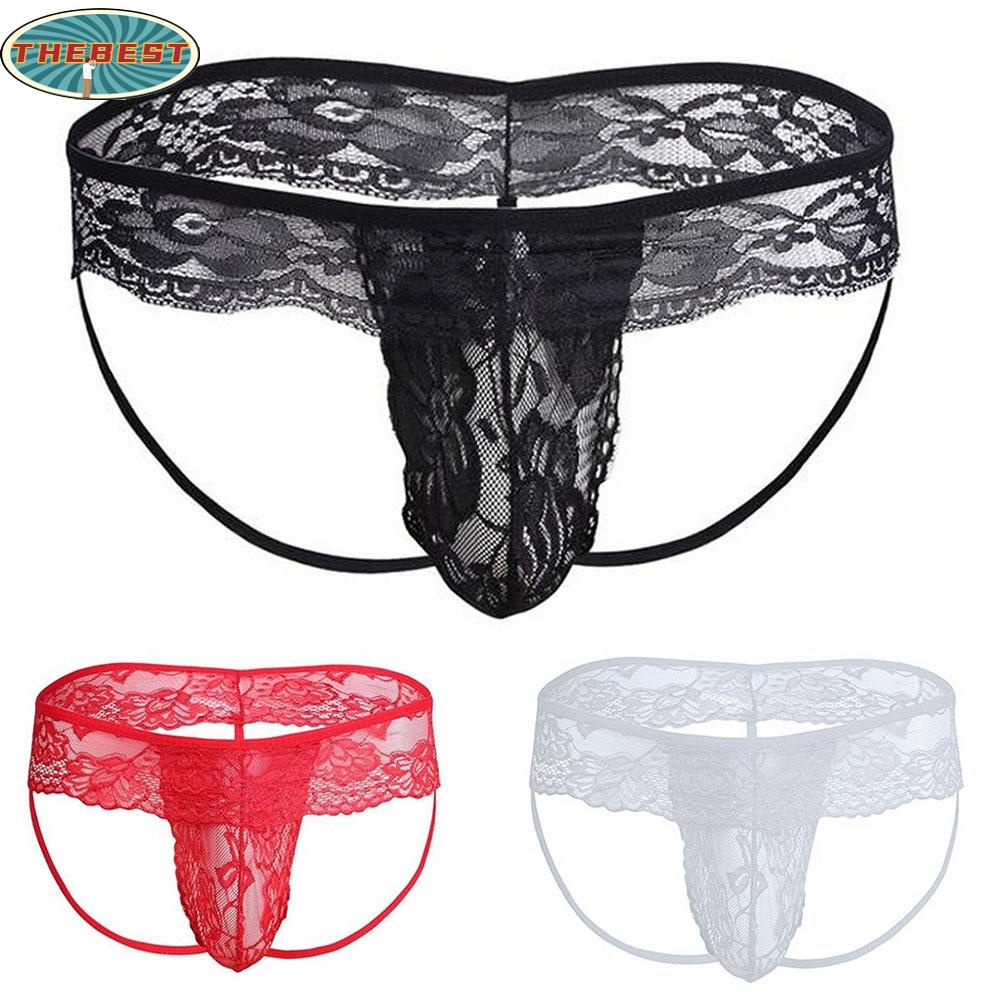 【THEBEST】Mens Underwear Thong Underpants Bulge Pouch G-string Lace+Spandex Panties