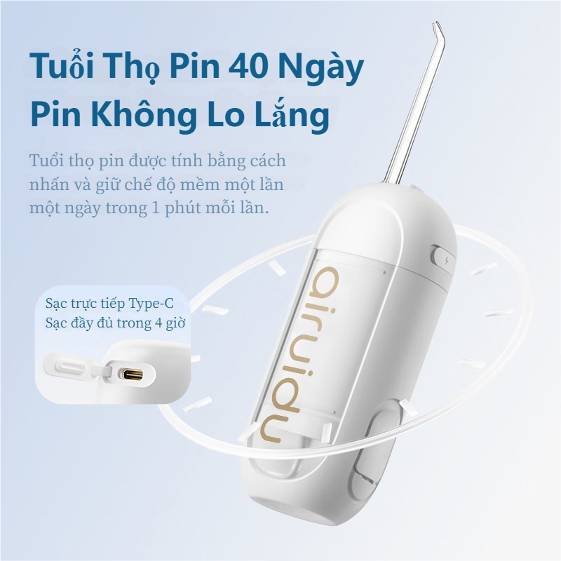 Airuidu CF560 Máy Tăm Nước Di Ðộng Pin 1300mAh Chống Nước IPX7 Lý Tưởng Cho Du Lịch Type-C