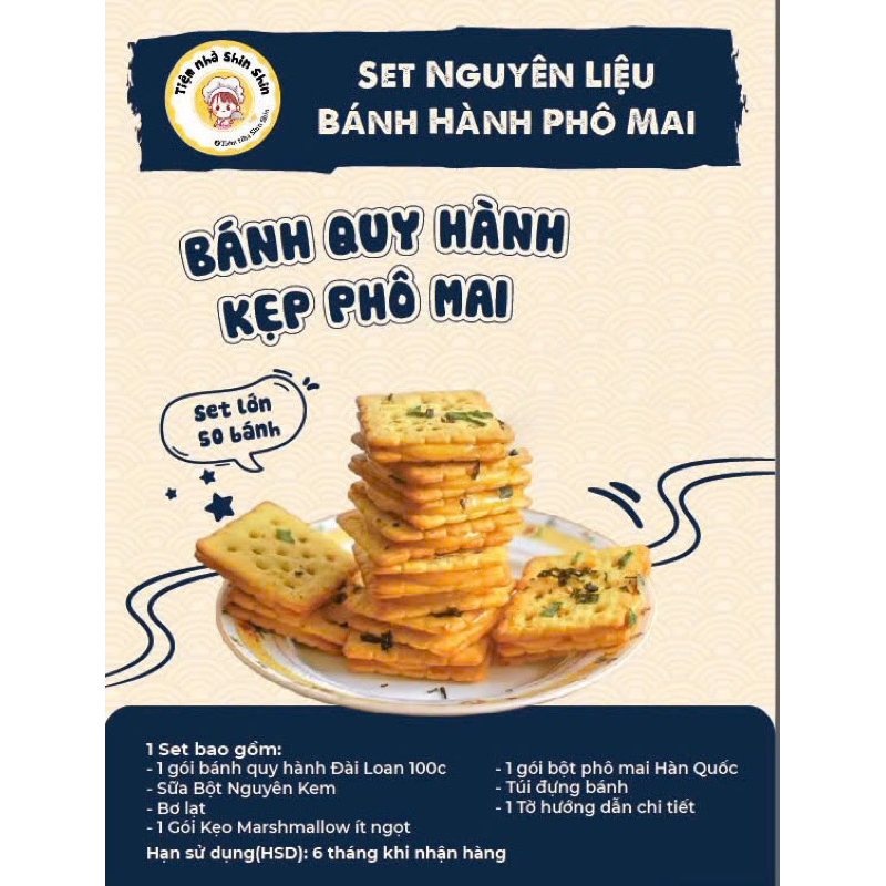 Set nguyên liệu Bánh Quy Hành Kẹp Phô Mai Kéo sợi 50 cặp bánh 900g (KÈM BƠ và Tặng TÚI BẮT KEM)