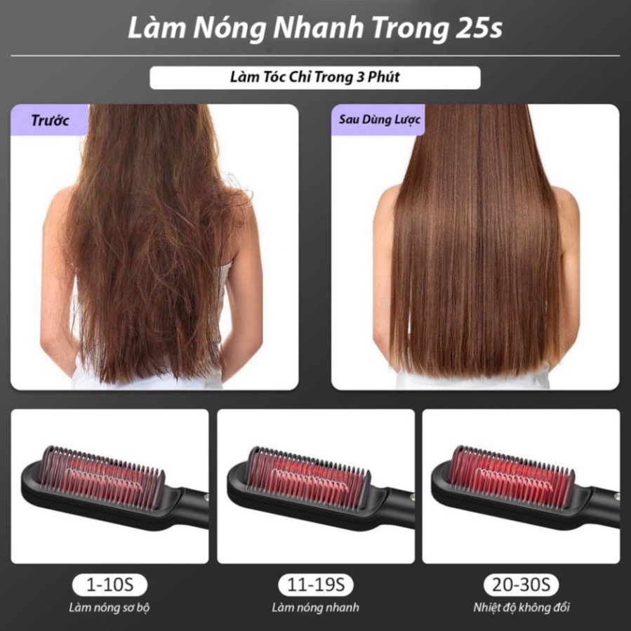 Lược Điện Chải Tóc Tạo Kiểu Chuyên Nghiệp, Lượt Điện 3in1 Đa Năng - Kiêm Máy Uốn Duỗi Ép Tóc Tạo Kiểu - L3