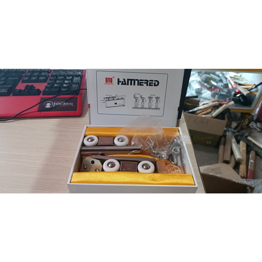 Bánh xe lùa treo cửa đi HAMMERED inox 304 loại 4 bánh- 8 bánh( hộp vải nhung )
