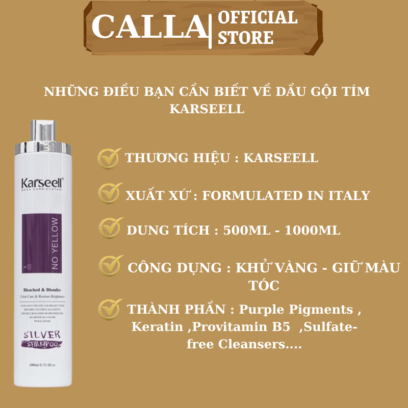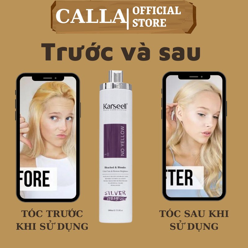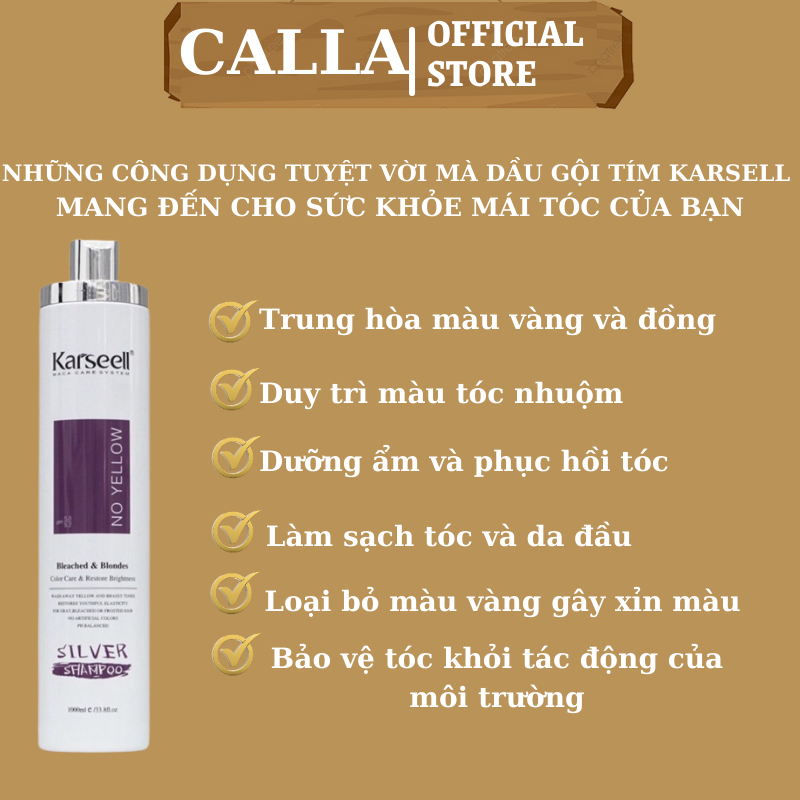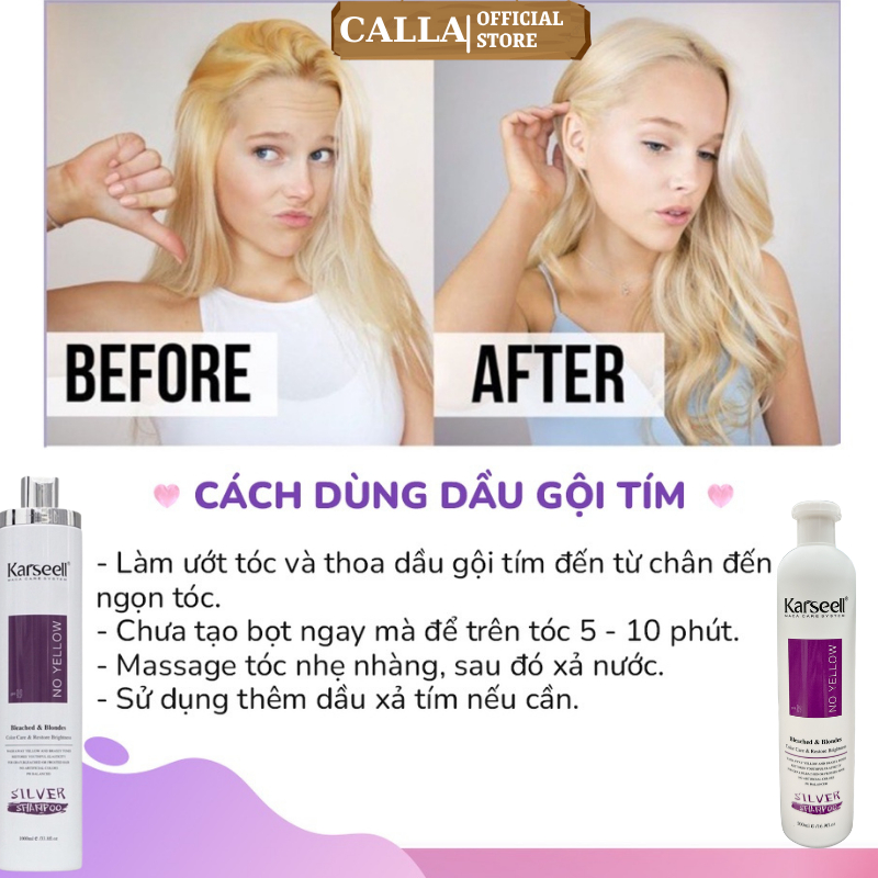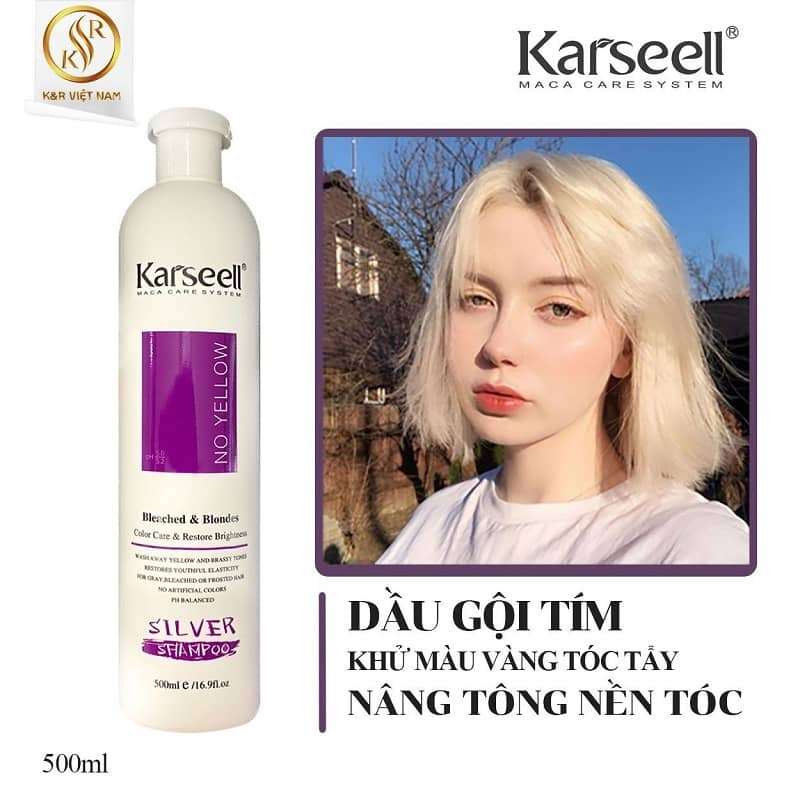 Dầu Gội Tím Karseell No Yellow & Ủ Tóc Tím 500ml Khử Vàng Giữ Màu Tóc Nhuộm Sáng Lung Linh Mềm Mượt