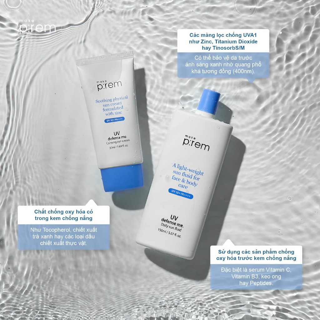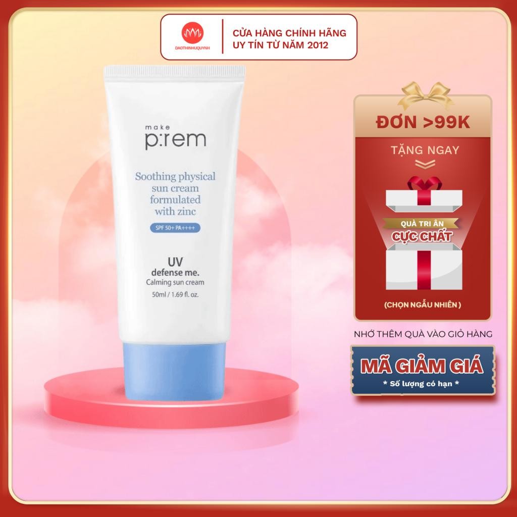 Kem chống nắng vật lý Make Prem UV Defense Me Calming Sun Cream SPF50+ PA++++ 50ml kcn make p:rem