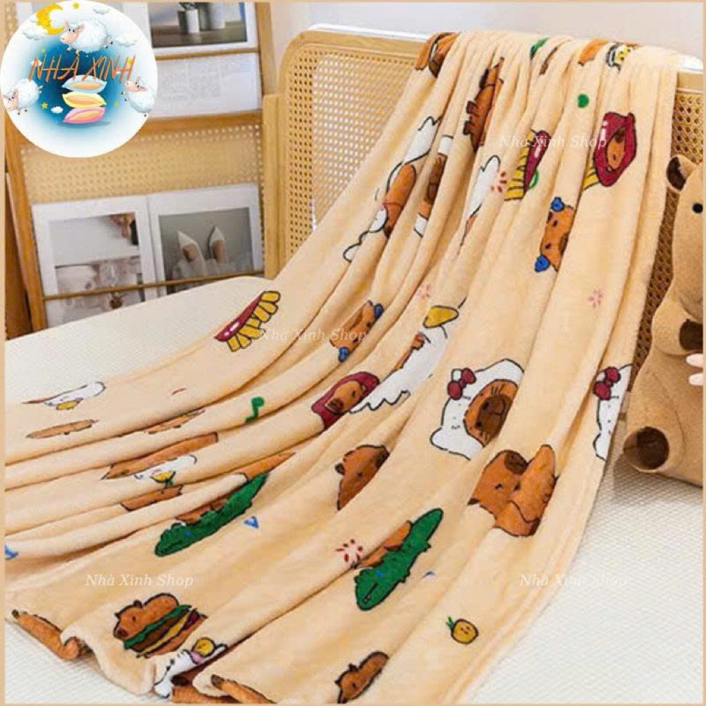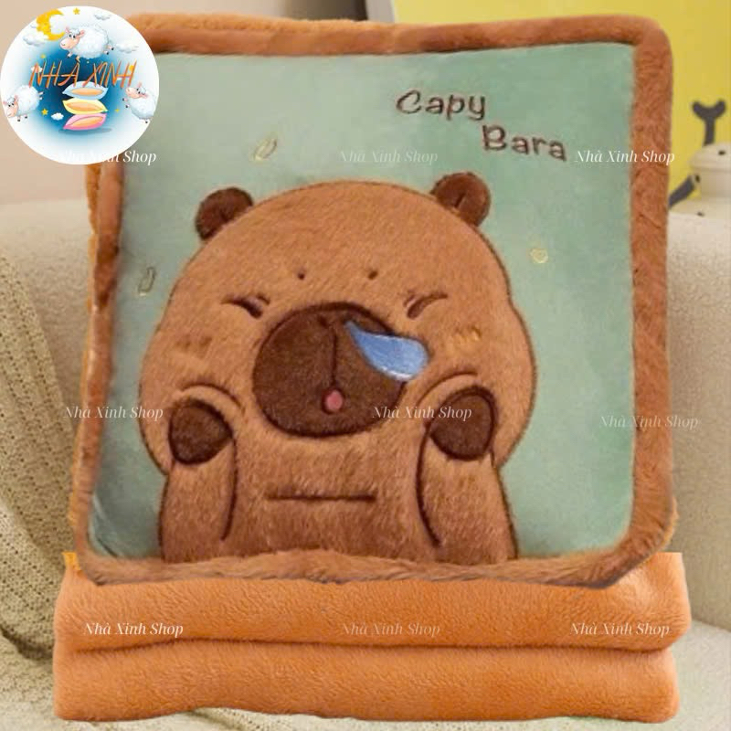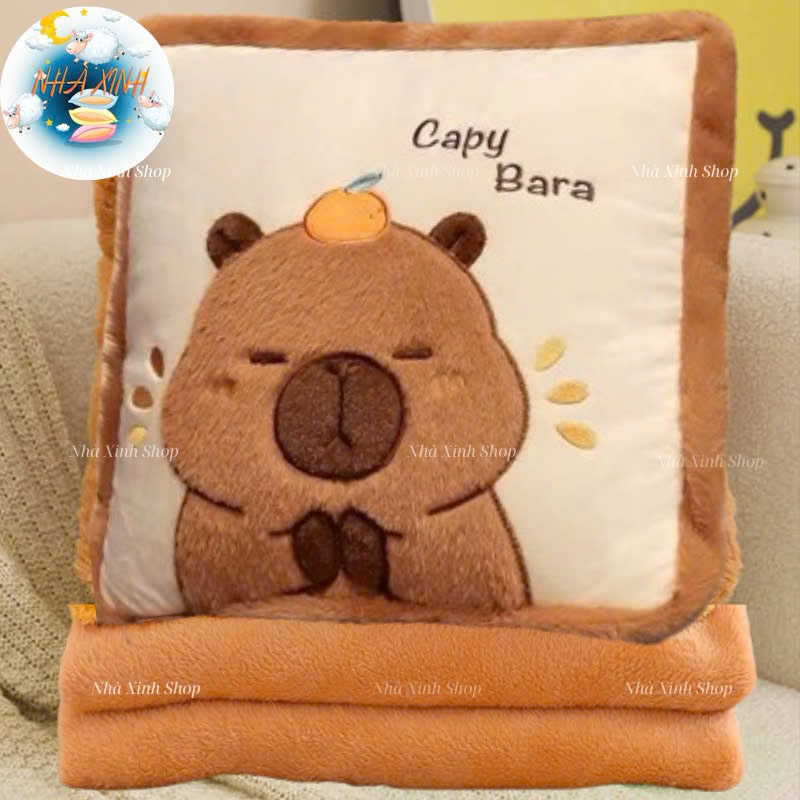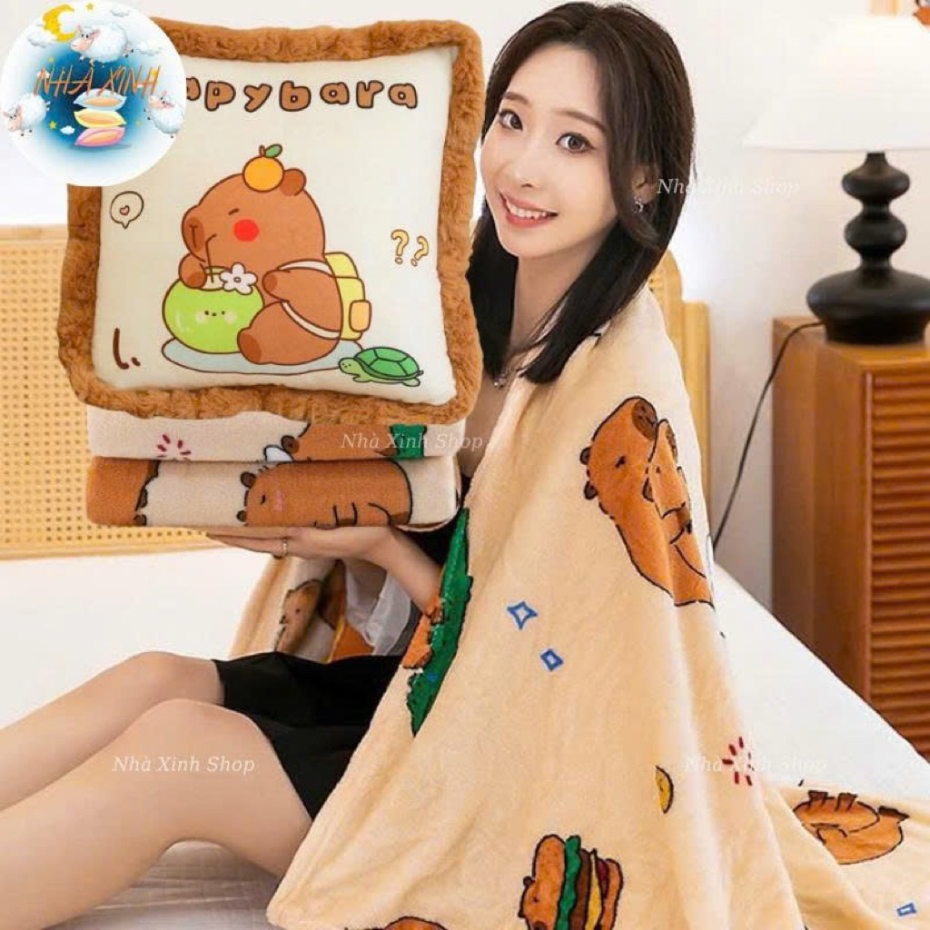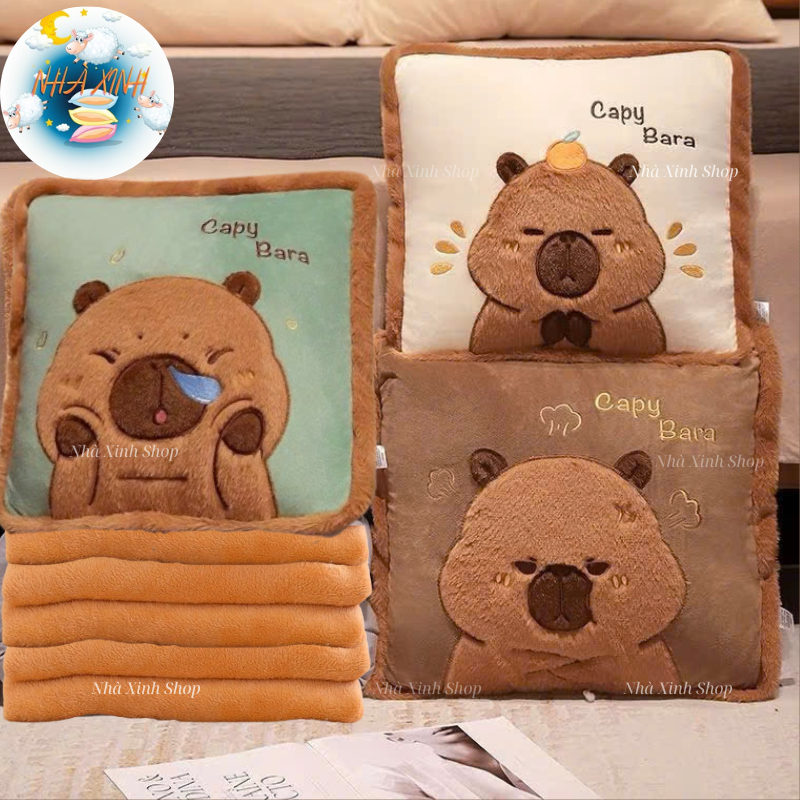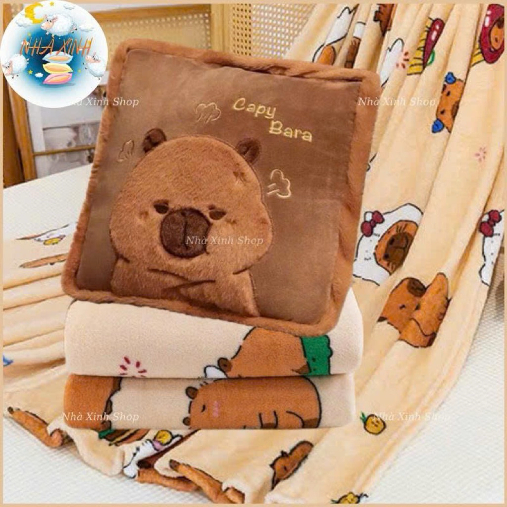 Combo gối văn phòng capybara vuông kèm 1 chăn lông tuyết có thể gấp gọn vào gối