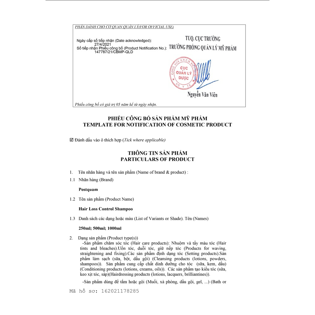 [hàng tem cty] Dầu Gội Giảm Rụng Tóc Postquam Hair Loss Control Shampoo Phục Hôi Tóc
