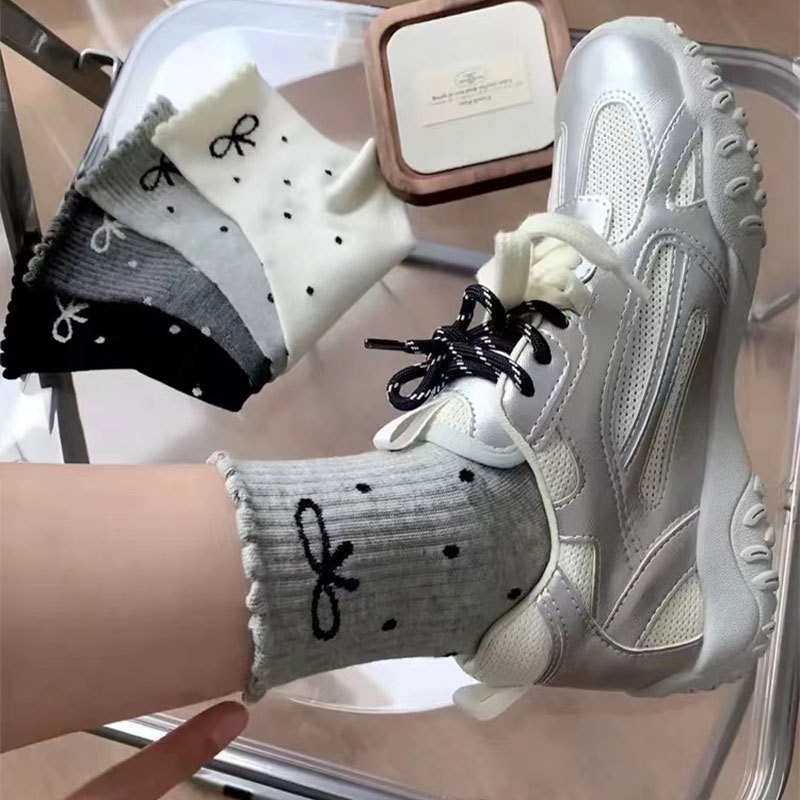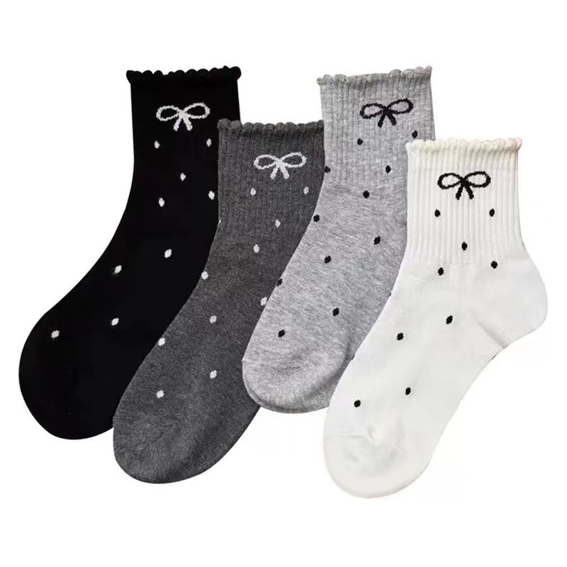 Phong Cách Mới Hợp Thời Trang ins Thu Đông Cọc Chấm Bi Nơ Ống Dài Phong Cách Nhật Bản Ảnh Hưởng Giữa-