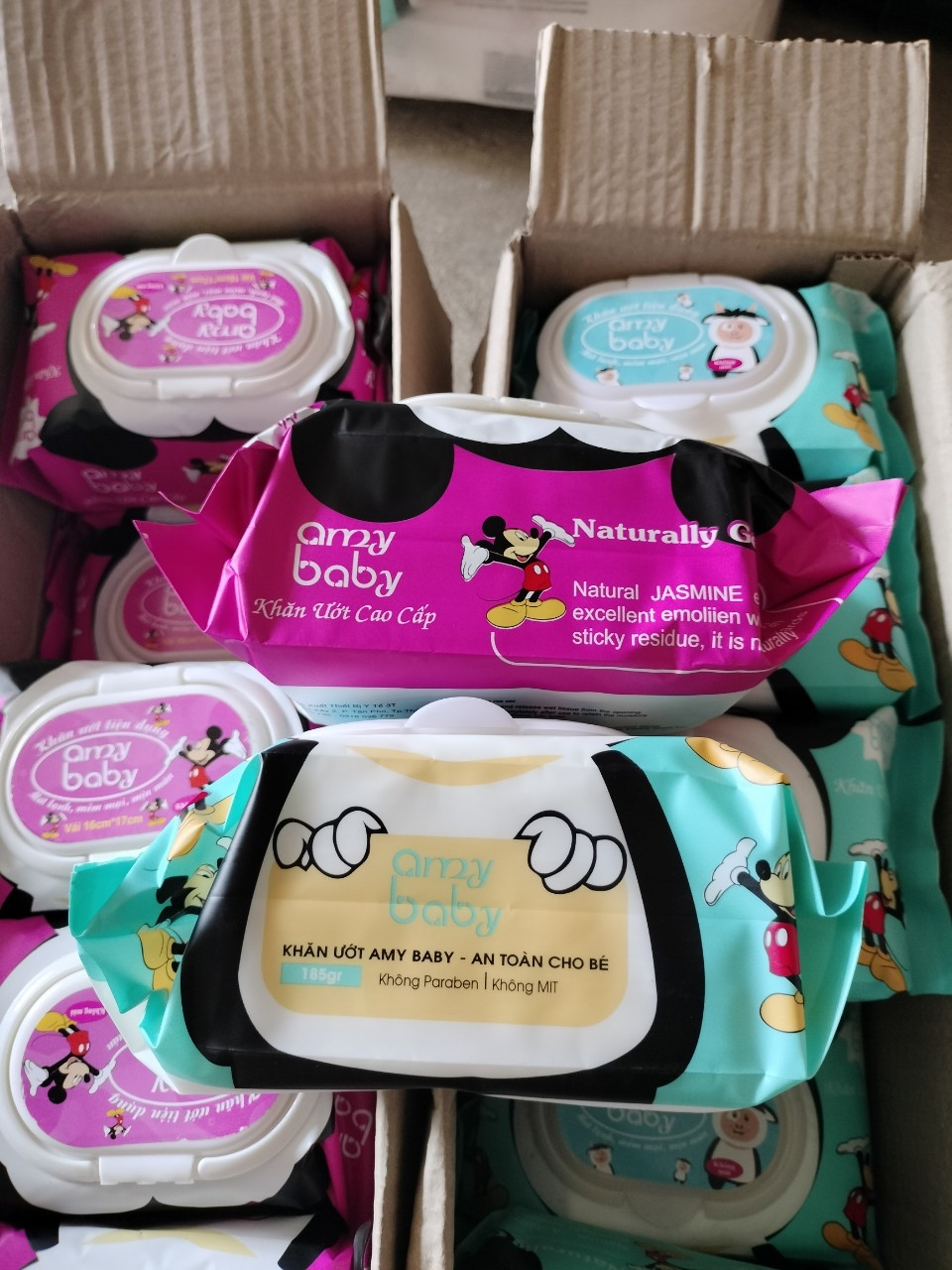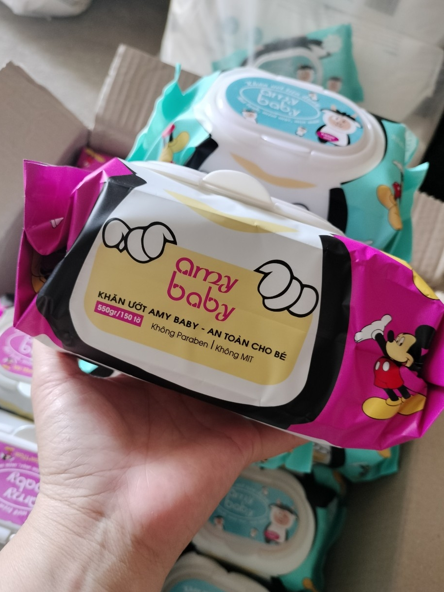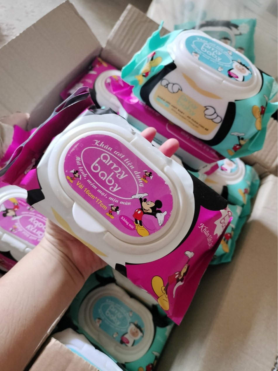 Combo 10 Gói Khăn Ướt Amy Baby 650gr/Gói - Vải Bi - Dày - Có Thể Tái Sử Dụng