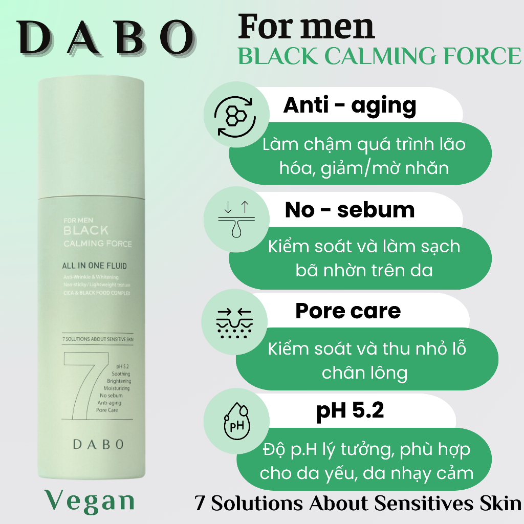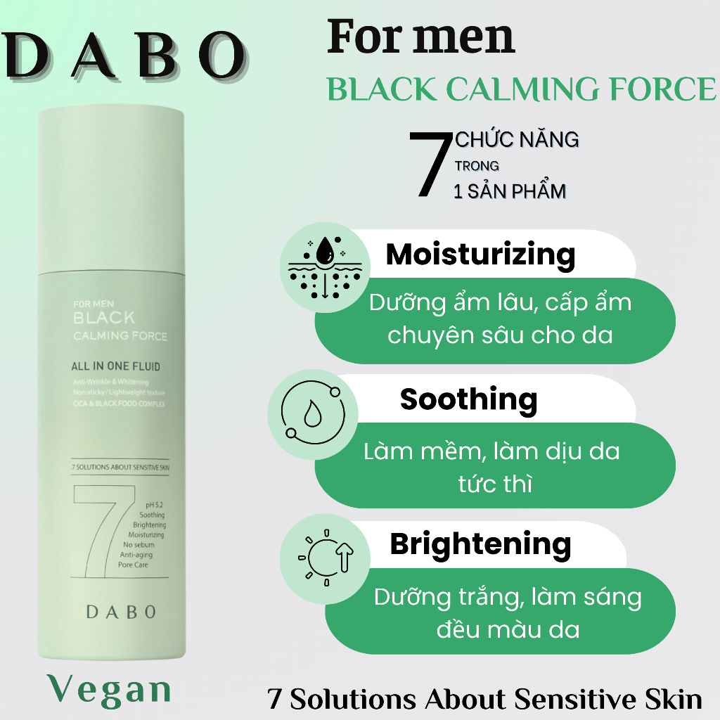 Tinh chất cho nam dưỡng trắng da cấp ẩm se khít lỗ chân lông DABO FOR MEN BLACK CALMING FORCE 120ml