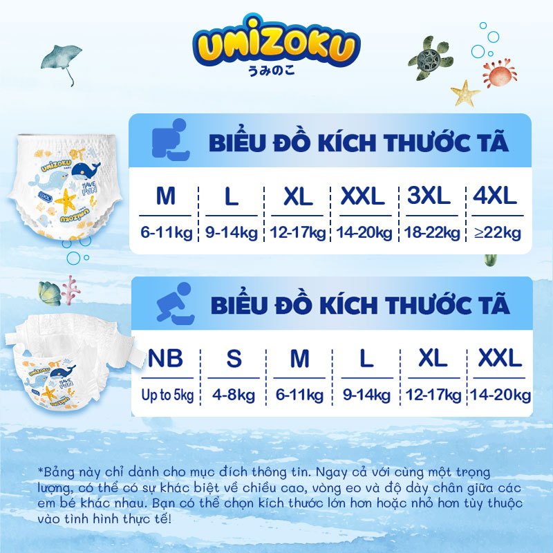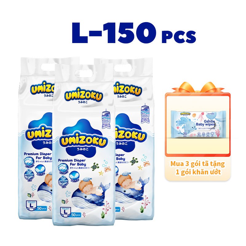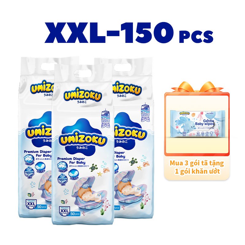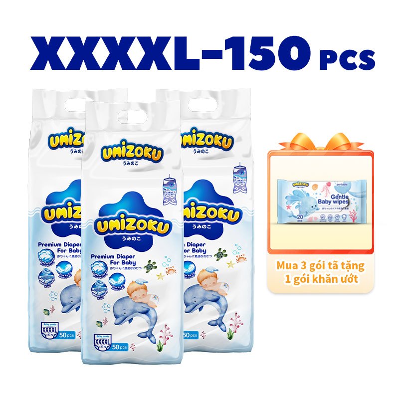 (Vietnam Spot)50/150 miếng UMIZOKU Tã em bé Nhật Bản (S/M/ L/ XL/ XXL/ XXXL/ XXXXL)