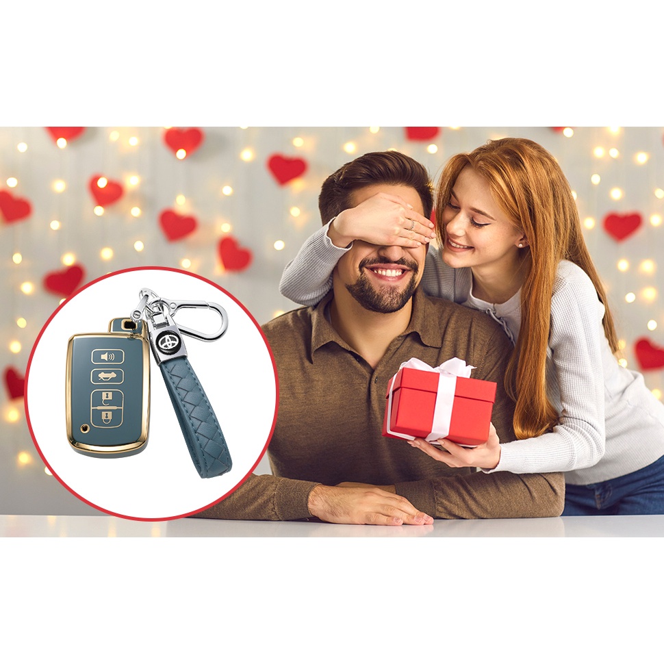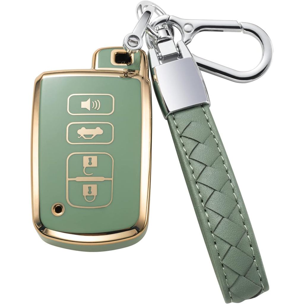 Dành Cho Xe Toyota Key Fob Có Dây Da, Vỏ Chìa Khóa Ô Tô Bảo Vệ Vỏ Cho Xe Toyota Avalon Camry Corolla RAV4 Sequoia Highlander 4 Nút Bảo Vệ Điều Khiển Từ Xa Thông Minh, Xanh Lá Cây